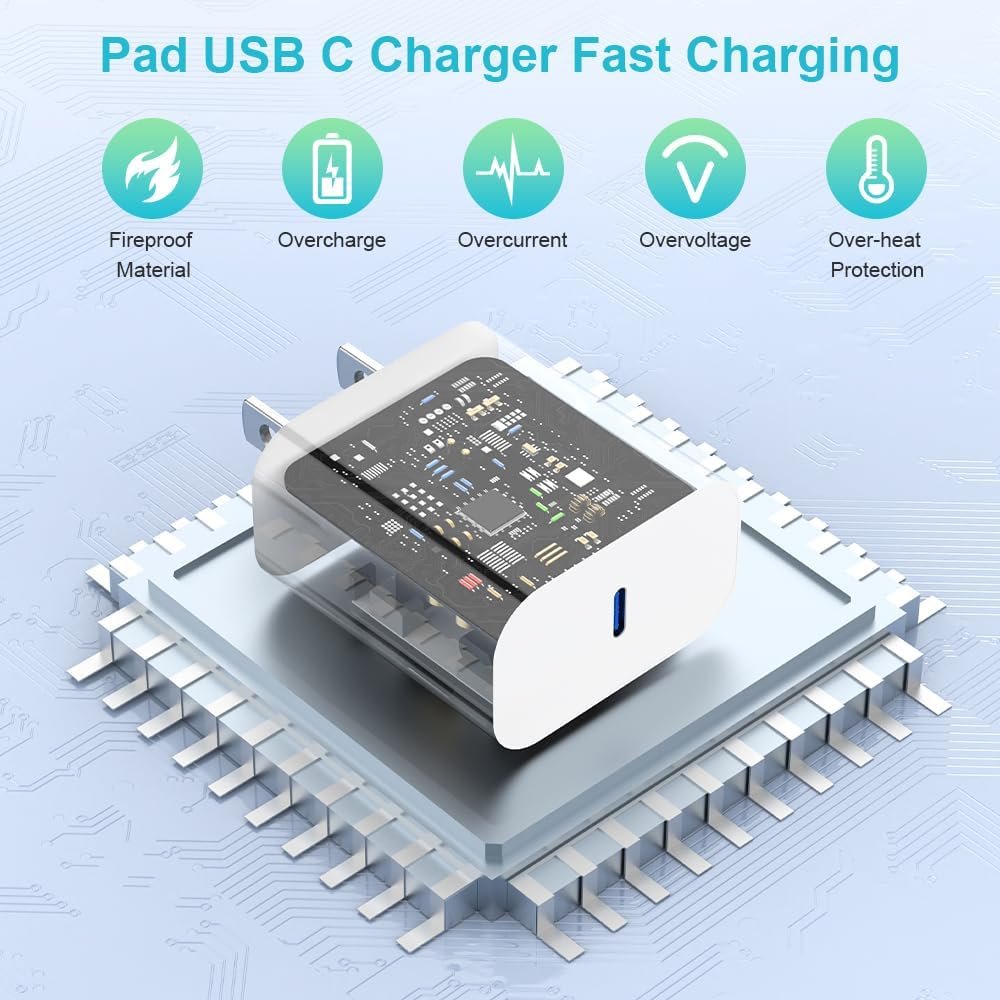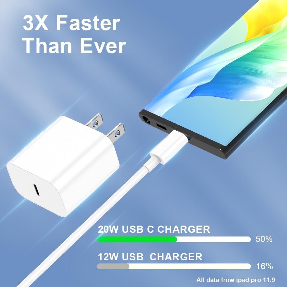 【iPhone 16 Charger】20W PD USB Type C power delivery wall plug, PD adapter 3.0 Quickly Charge , USB-C port provides Max 20W output power, 3X faster than standard USB charger. charging your up to 50% in just 30 minutes for iPad Pro Charging, At 3A Maximum, Helps You Work Efficiently.
