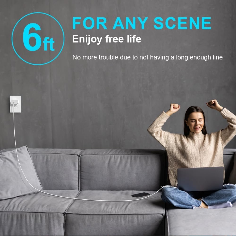 【iPhone 16 Fast Charger】The Power Delivery Wall Charger for iPad and iphone owns a built-in multi-protection system, avoiding over-voltage,over-charge,over-heat, etc. Match the current required by the device automatically, charges your iPhone/iPad device fast, safely, and steadily. Tangle-free 6 Feet length is convenient for usage while charging and sync at home/office/travel in bed, hotel rooms, and more.