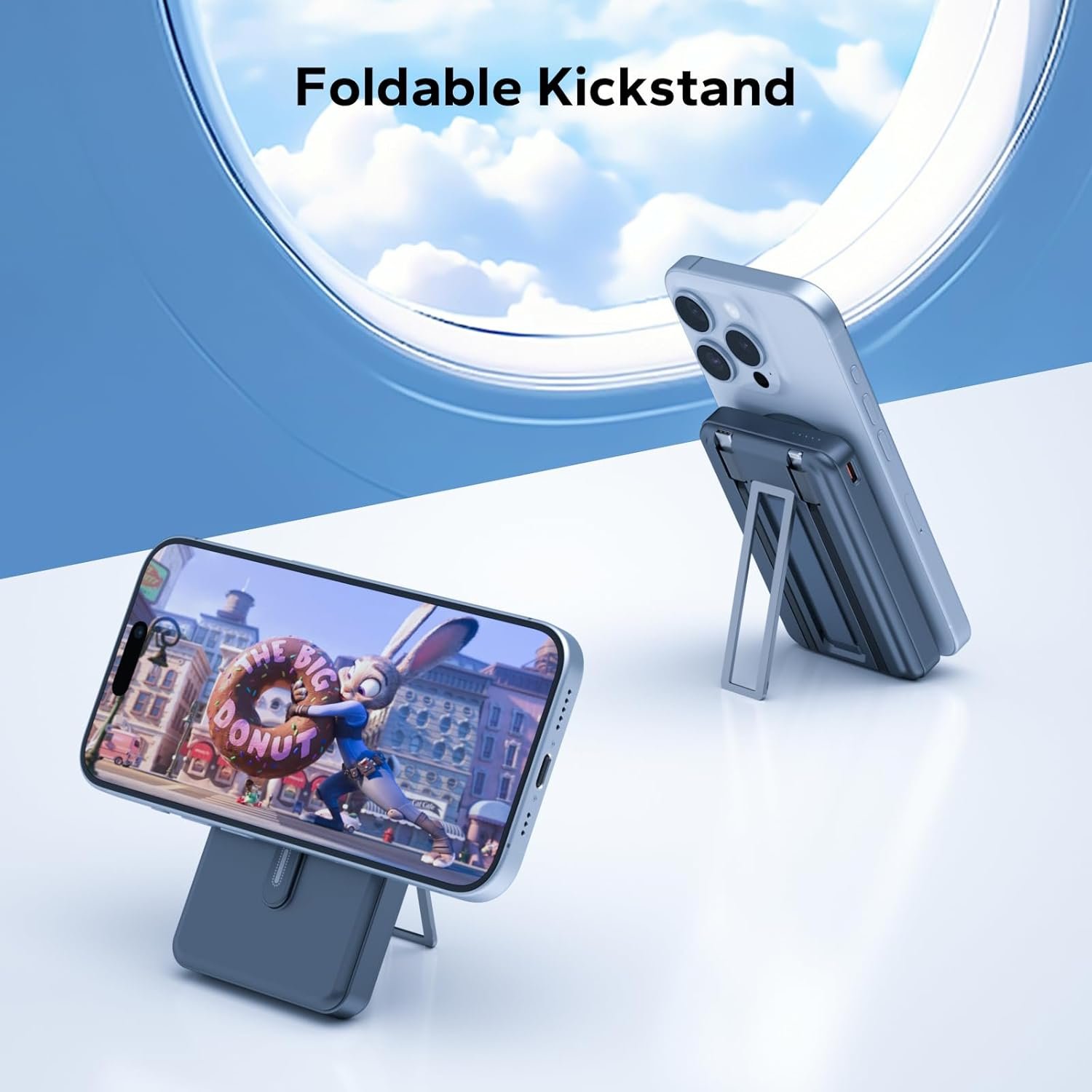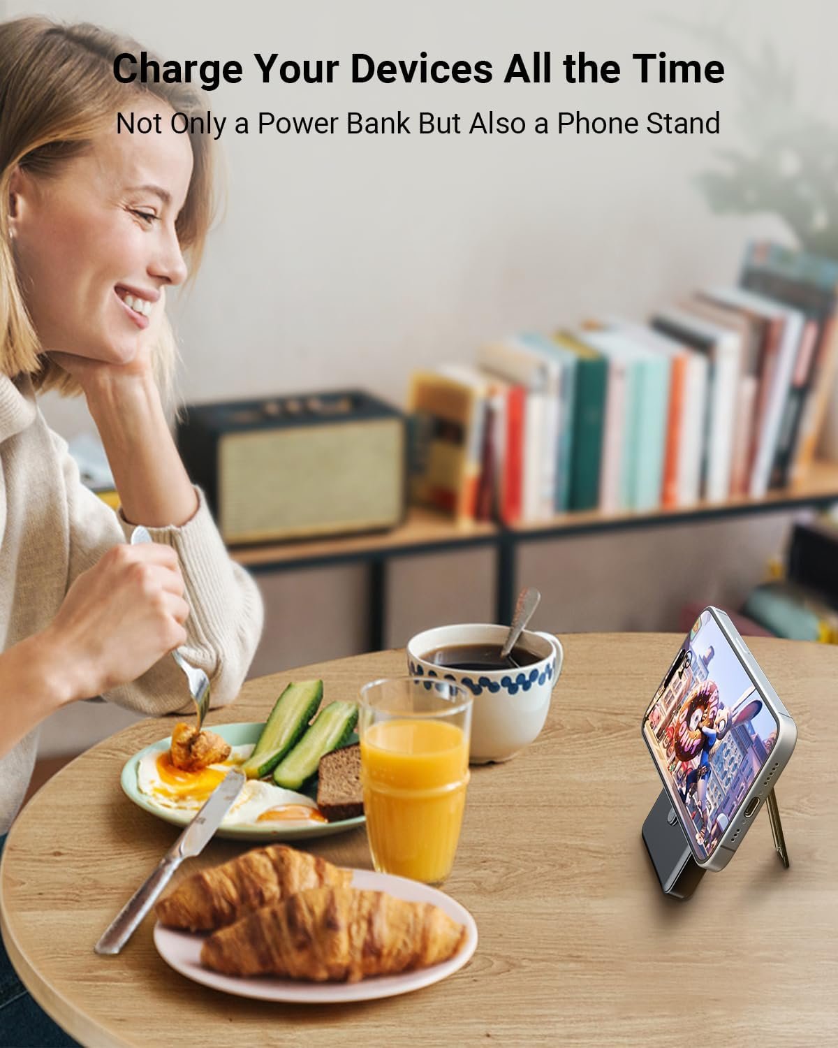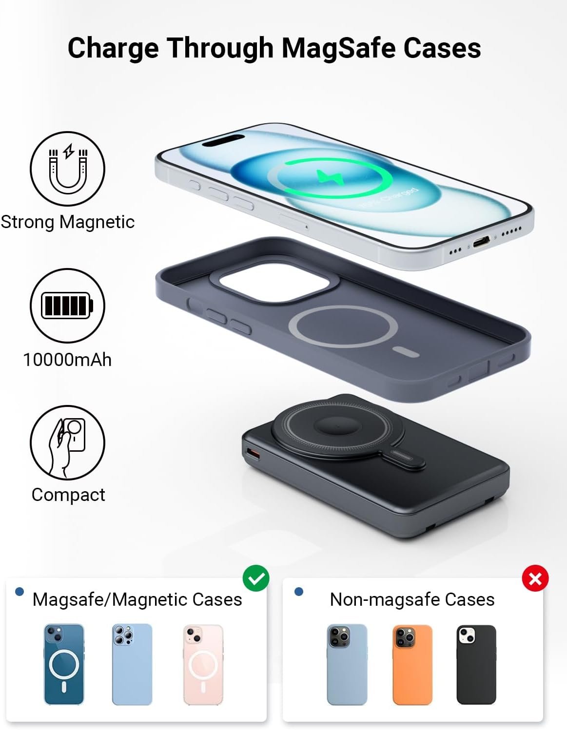 【Not for Non-magsafe Cases】For wireless charging, ensure your phone has a MagSafe or magnetic case if you prefer wearing a case for your phone. The apple watch portable charger adopts the latest magnetic suction technology, charging immediately after a snap. The bateria portatil para iphone ensures the convenience and security of charging and holding your devices in any orientation portrait or landscape.