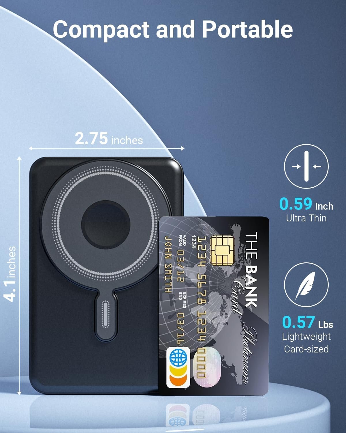 【Reliable and Safe】The magnetic battery charger for iphone is equipped with built in temperature control, overcharge protection, over-current and over-voltage protection, and foreign object detection, providing you a safe wireless charging. The power pod is Qi-certified with advanced FCC approval, and its small and compact design takes up less space and convenient for travel. This fast charging power bank supports 20W MAX charging.