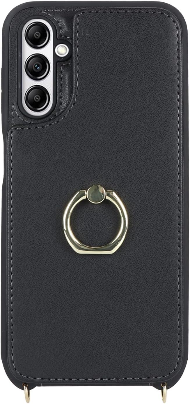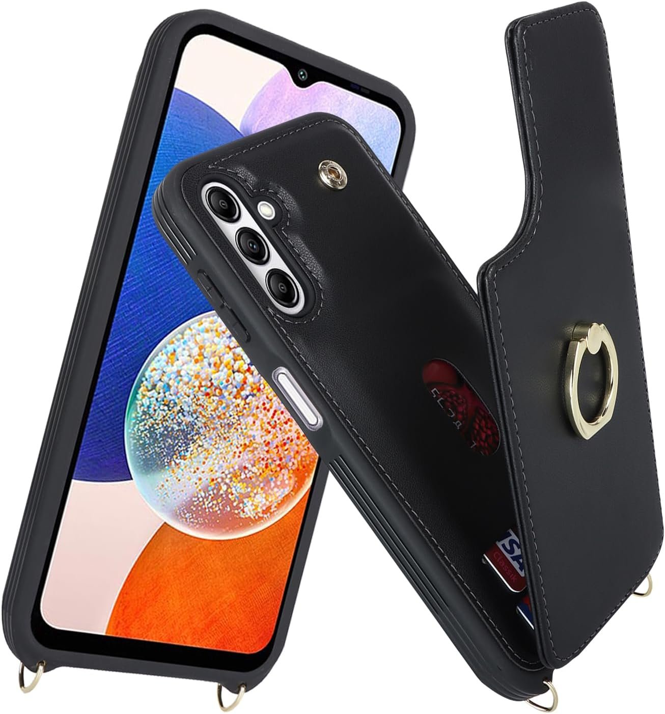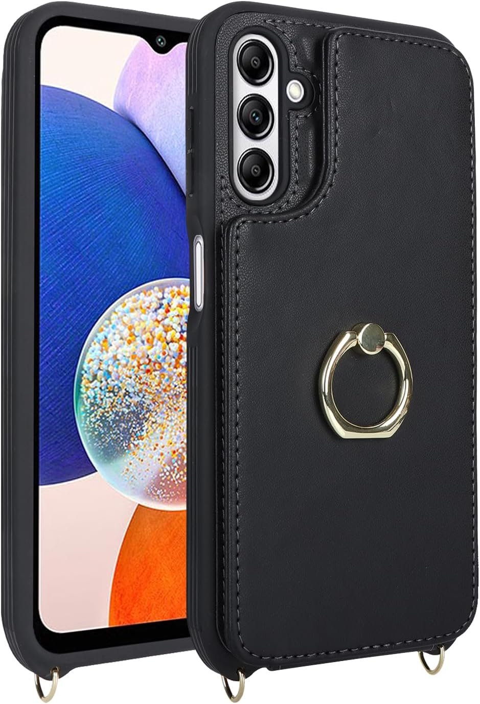 for Samsung Galaxy A14 5G Case with Card Holder and Strap for Women,Crossbody Lanyard,Ring Stand,Snap Clasp,Phone Wallet Cases 6.6 inch(Black)