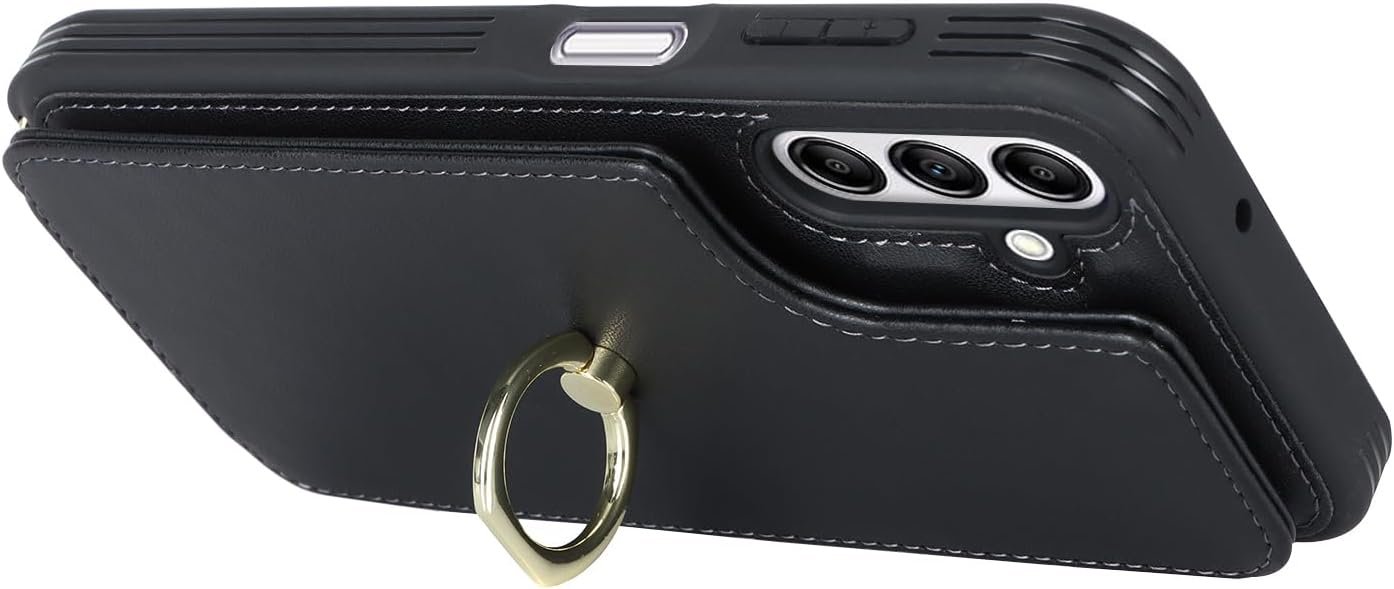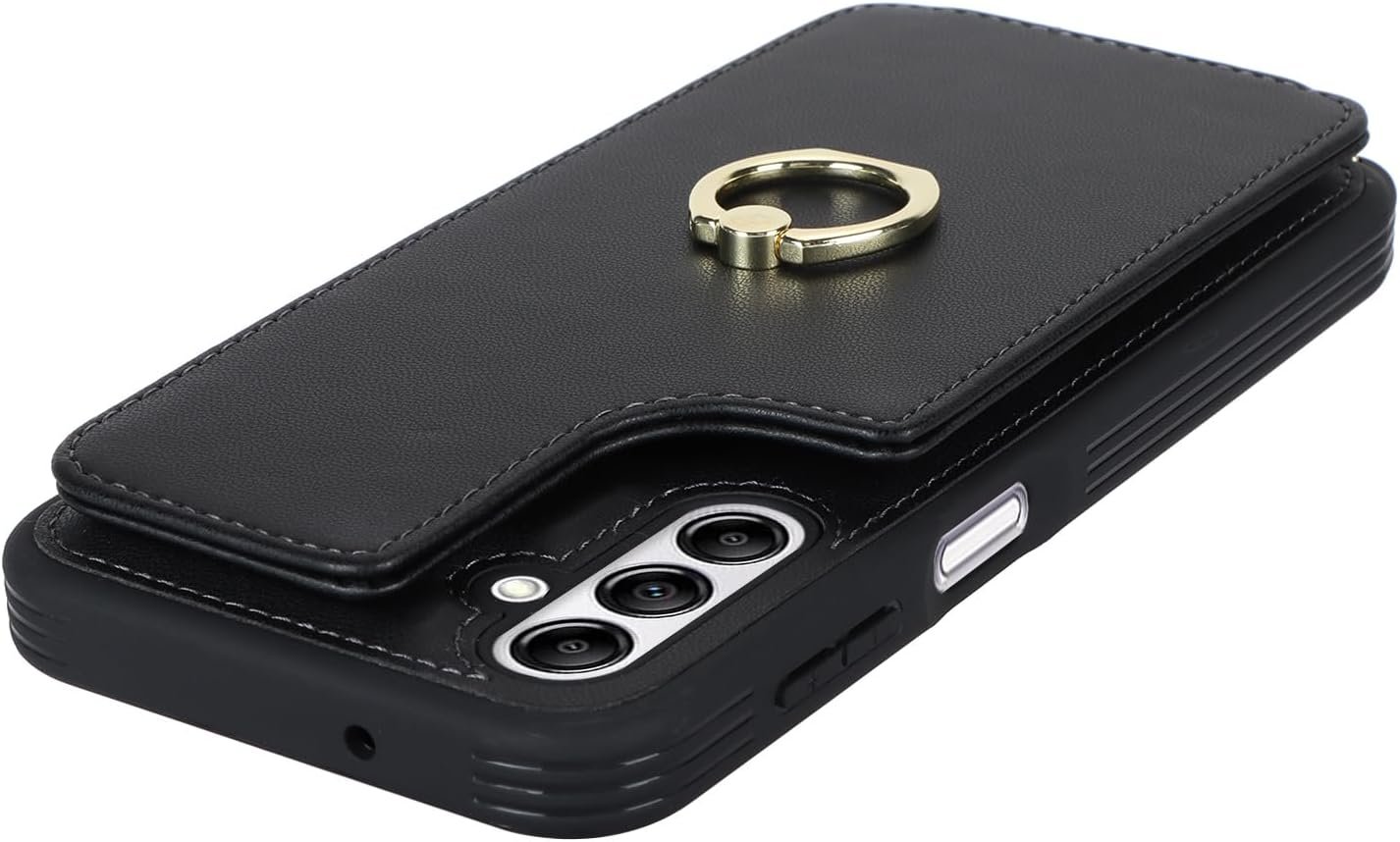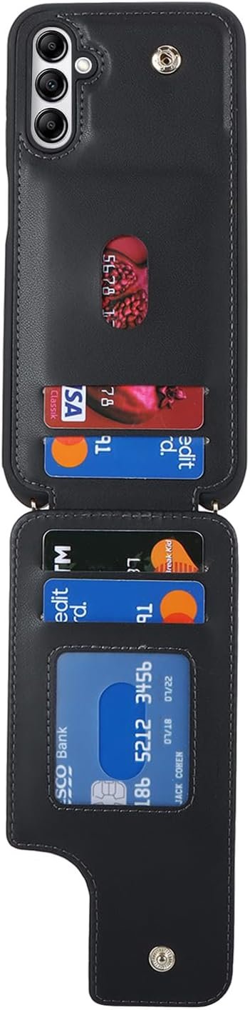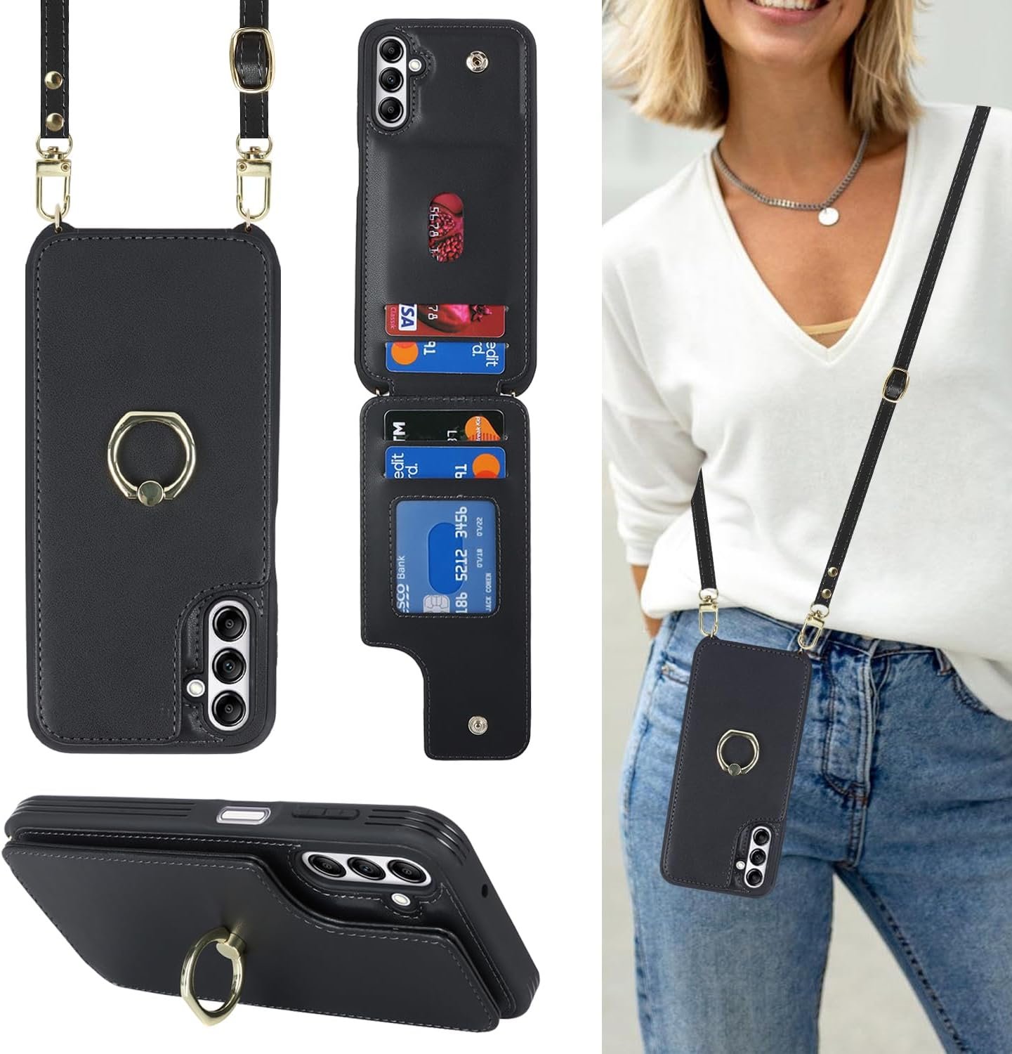 for Samsung Galaxy A14 5G Case with Card Holder and Strap for Women,Crossbody Lanyard,Ring Stand,Snap Clasp,Phone Wallet Cases 6.6 inch(Black)