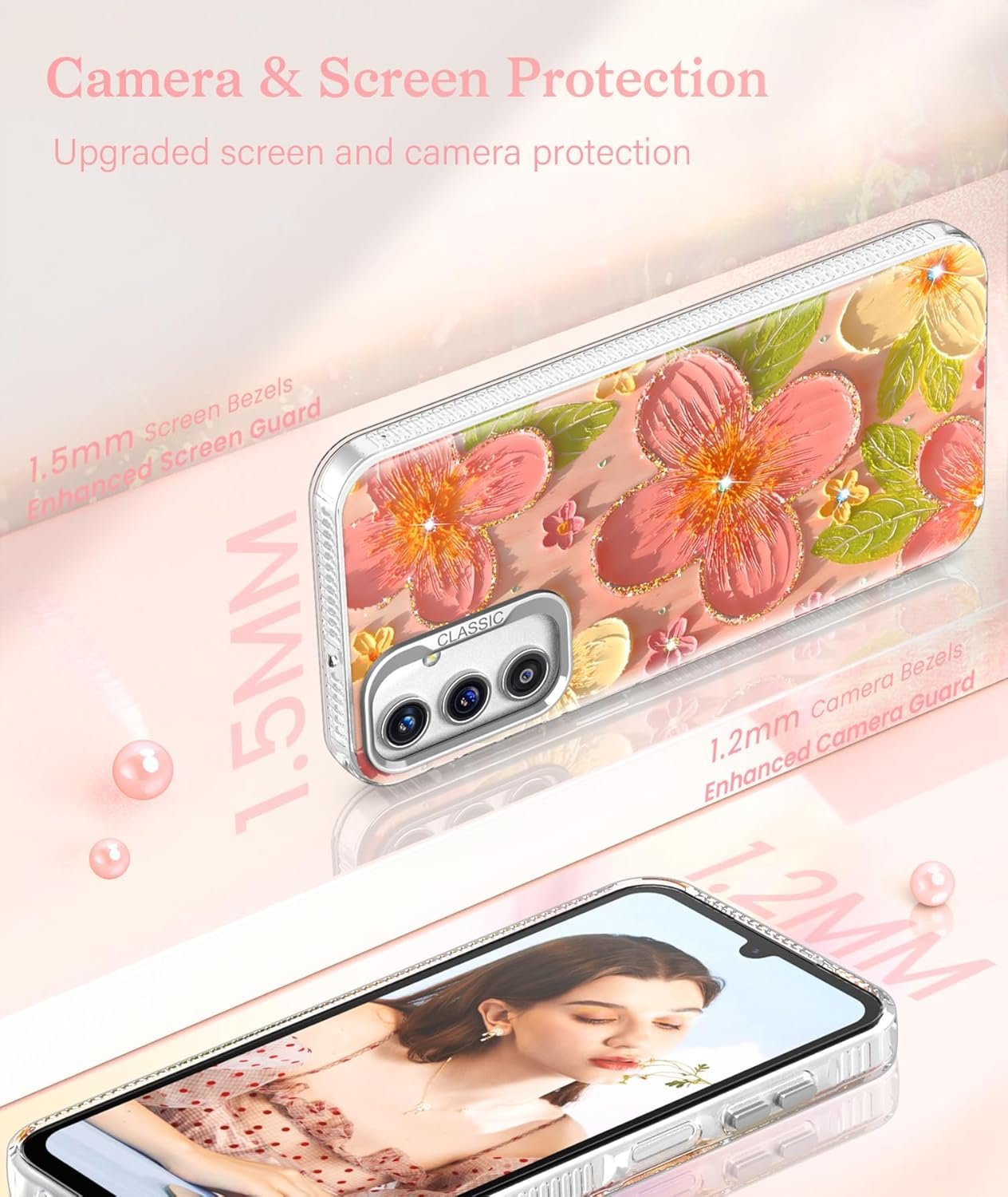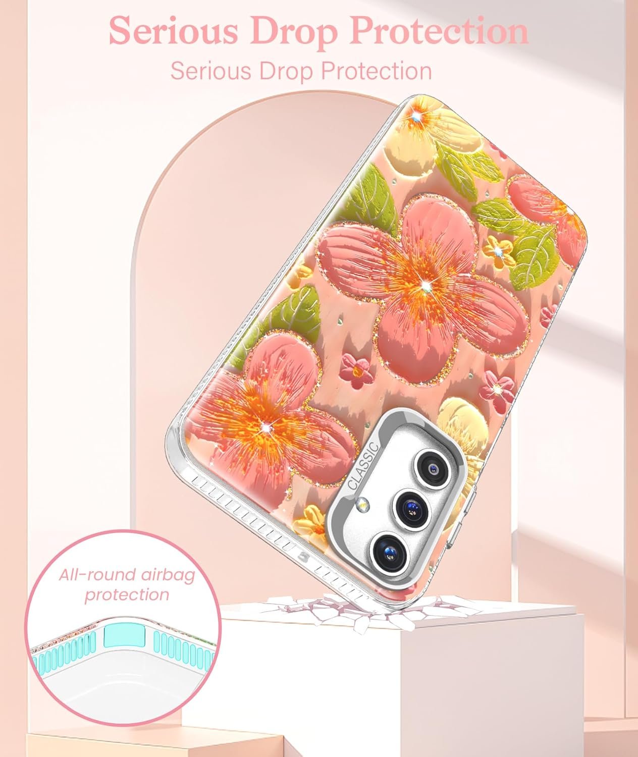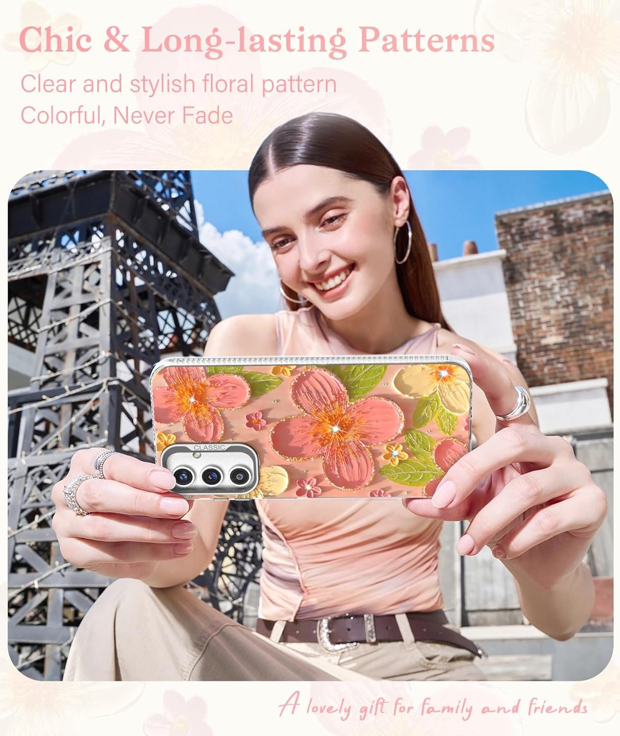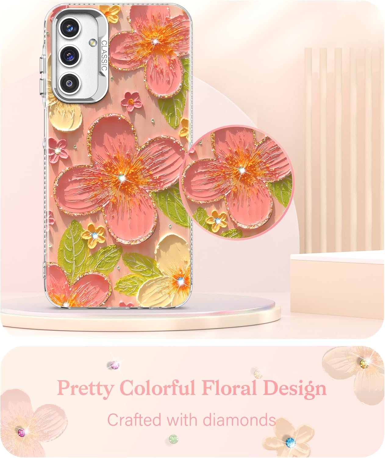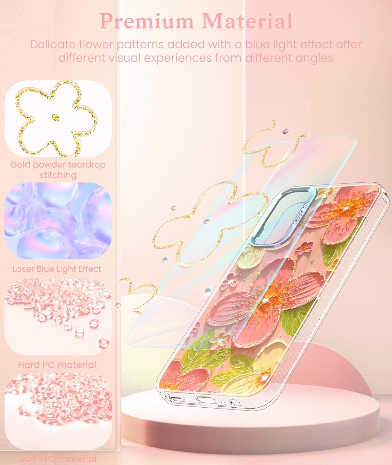 Stylish Printed Flower Design: Vintage oil painting floral pattern made with unique IMD technology. sophisticated blue light technology allows you to experience different visual effects at different angles. ultimate with teardrop stitching and rhinestones. pattern is lifelike, colorful, never fade for girls women.