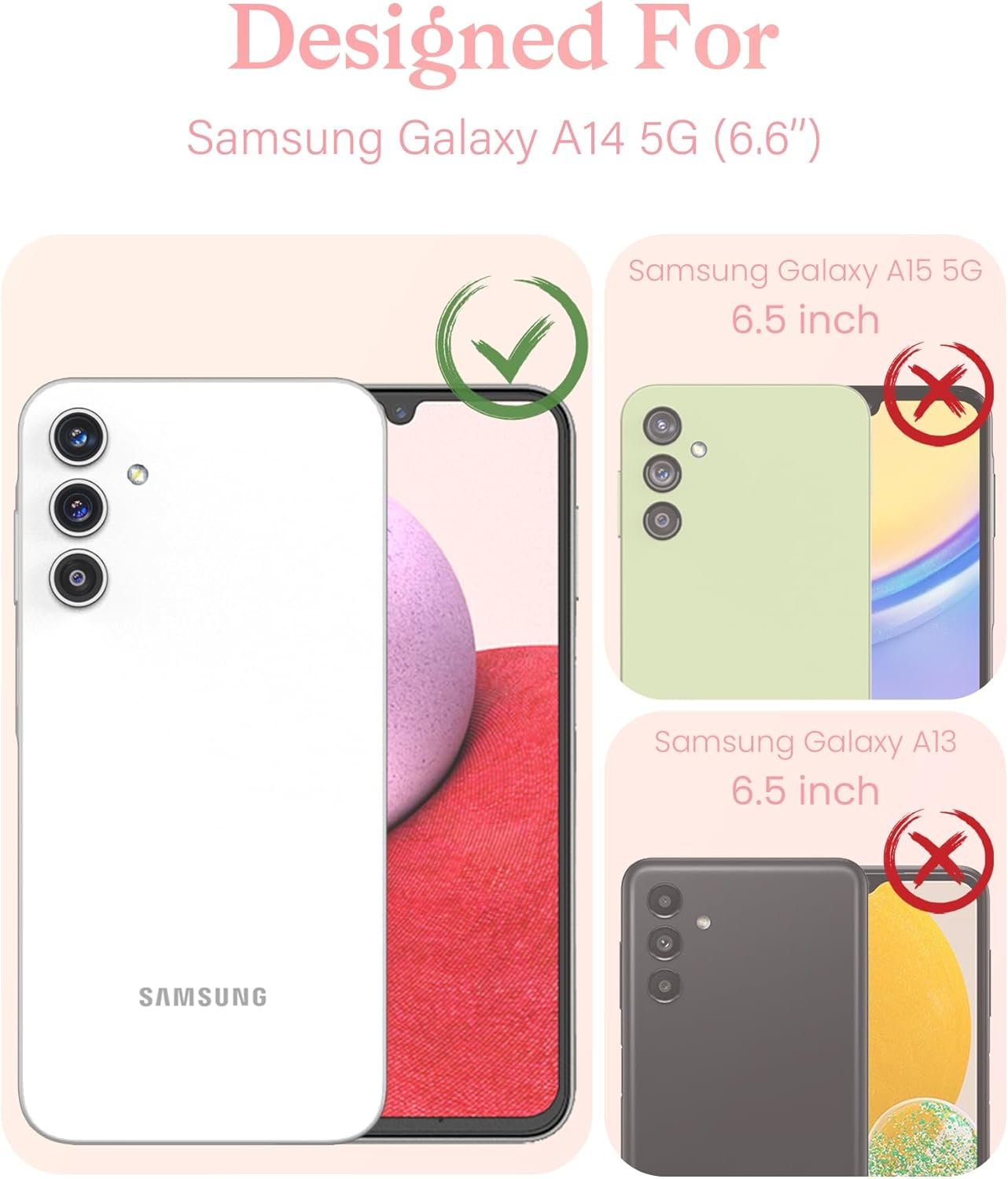 Compatible models:ONLY designed for Samsung Galaxy A14 5G 6.8 inch with 2 Pack Tempered Glass Screen Protector,Please check your phone model before placing an order (Refer to image 2) .If any product issues, such as incompatible phone model, product not as expected, Please contact us through the Amazon Message Cente.