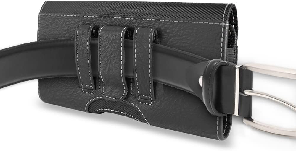 Two belt loops and a Leather warped metal belt clip provides more secure of using pouch case