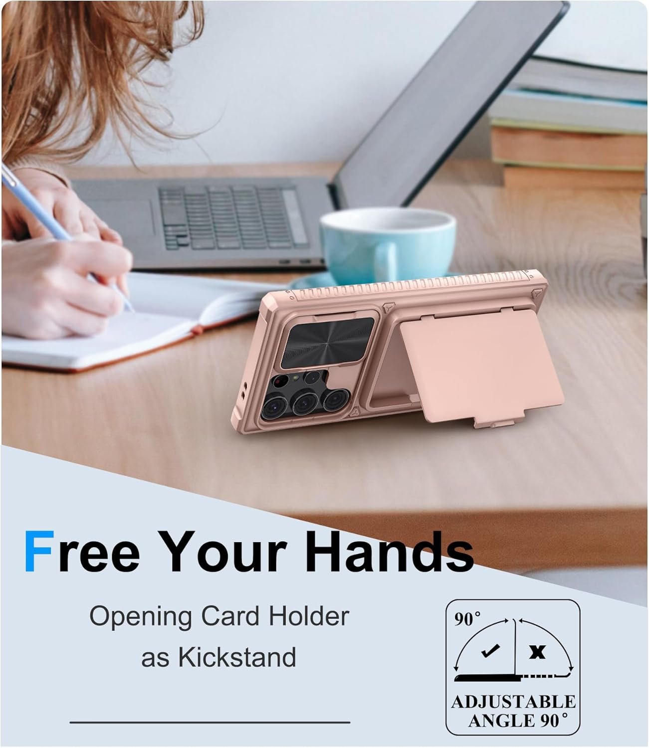 ✅【Hidden Kickstand to Release Your Hands】The opened card holder cover can be used as a kickstand. Release your hands while watching the video. As the cardholder is opening, please keep them in other safe places if the cards or cash are in our Galaxy S23 Ultra Case.