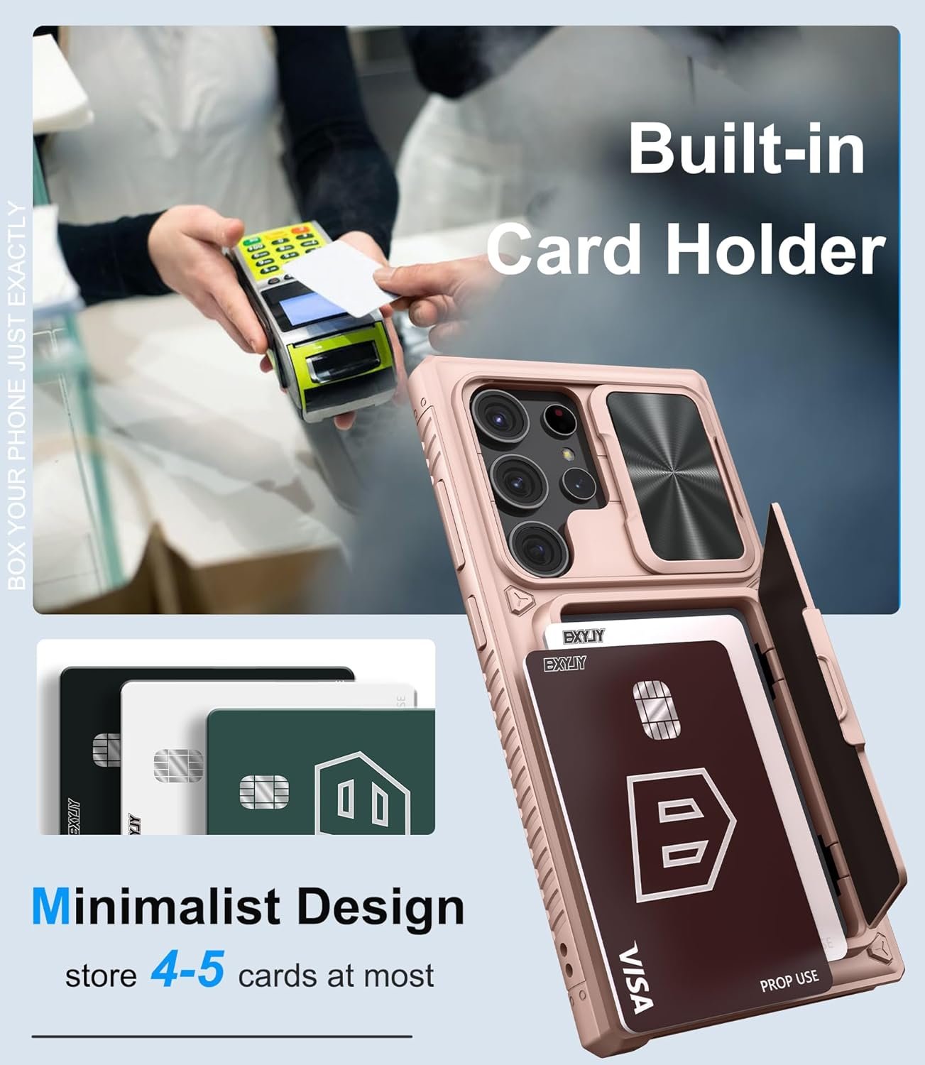 ✅【Bulit-in Card Holder】Our S23 Ultra case with a card storage room can use as a pocket-friendly wallet, which allows at least 3 cards with protruding typeface, or 5 cards without protruding typeface, or a few sheets of cash.