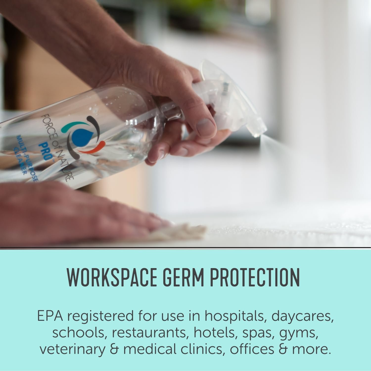 FOR USE WITH FORCE OF NATURE PRO ONLY: Force of Nature Pro was designed with workplaces in mind. No harmful chemicals or fumes. No rinsing, even when disinfecting food contact surfaces. It can be used in offices, hospitals, schools, daycares, kitchens, bathrooms, conference rooms, breakrooms and more.