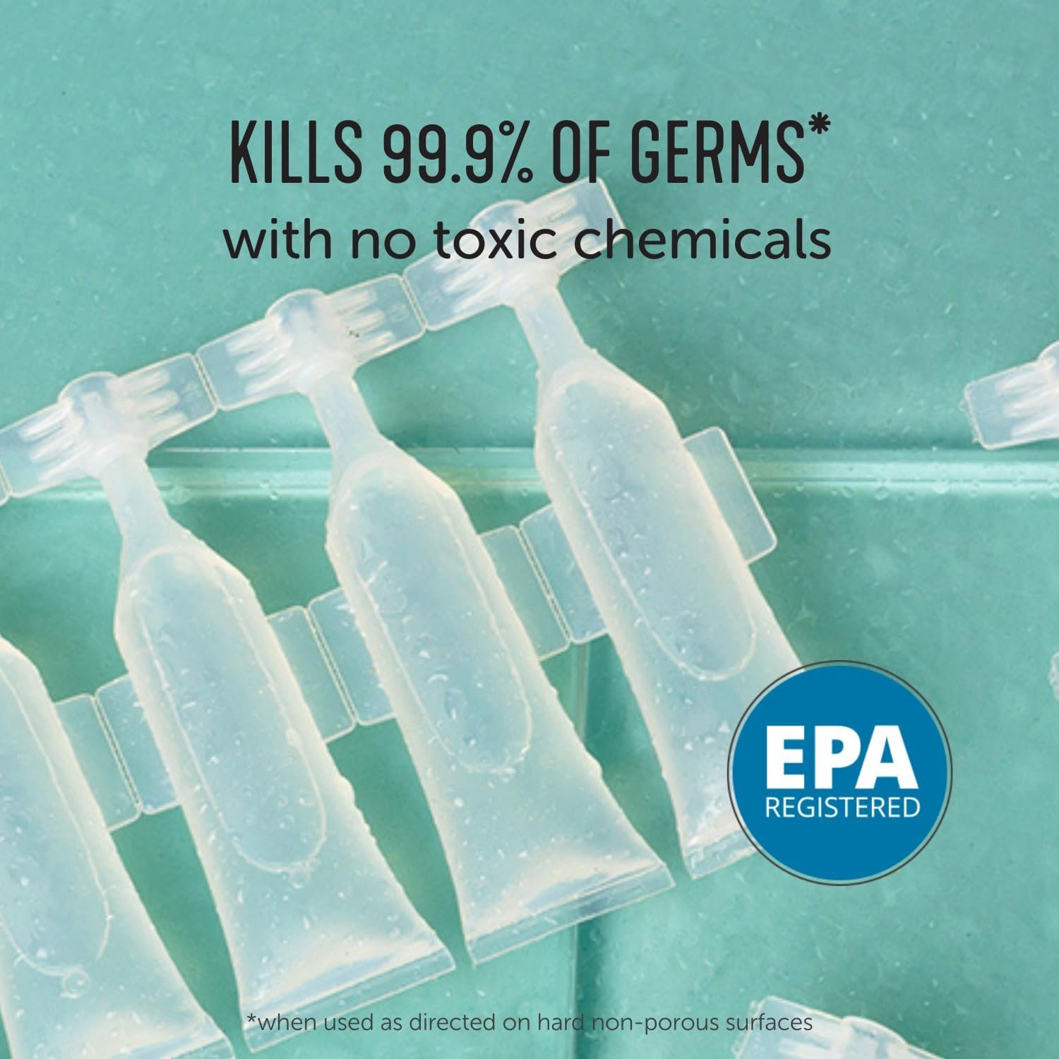 *Kills 99.9% of viruses & bacteria: even Staph, MRSA, Salmonella, Norovirus, Listeria, Influenza A & Pseudomonas when used as directed on hard non-porous surfaces.