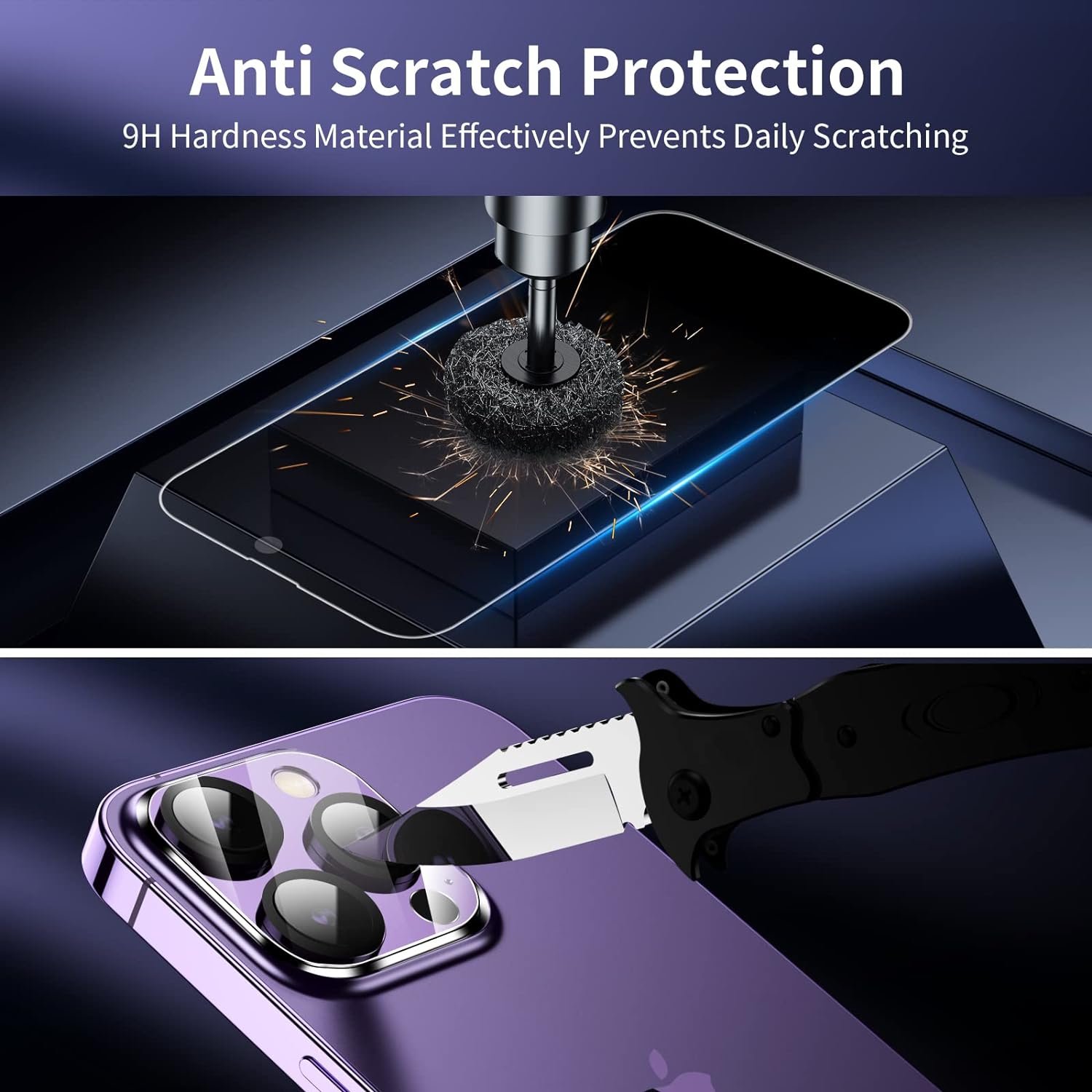 【Shatterproof and Scratch-Resistant】 iPhone 14 Pro Max screen protector privacy glass made of 9H super strong military explosion-proof glass, and the strengthened edge design ensure the corners of the screen are protected well, which not only shock-proof, also protecting your screen from scratches to high impact drops.