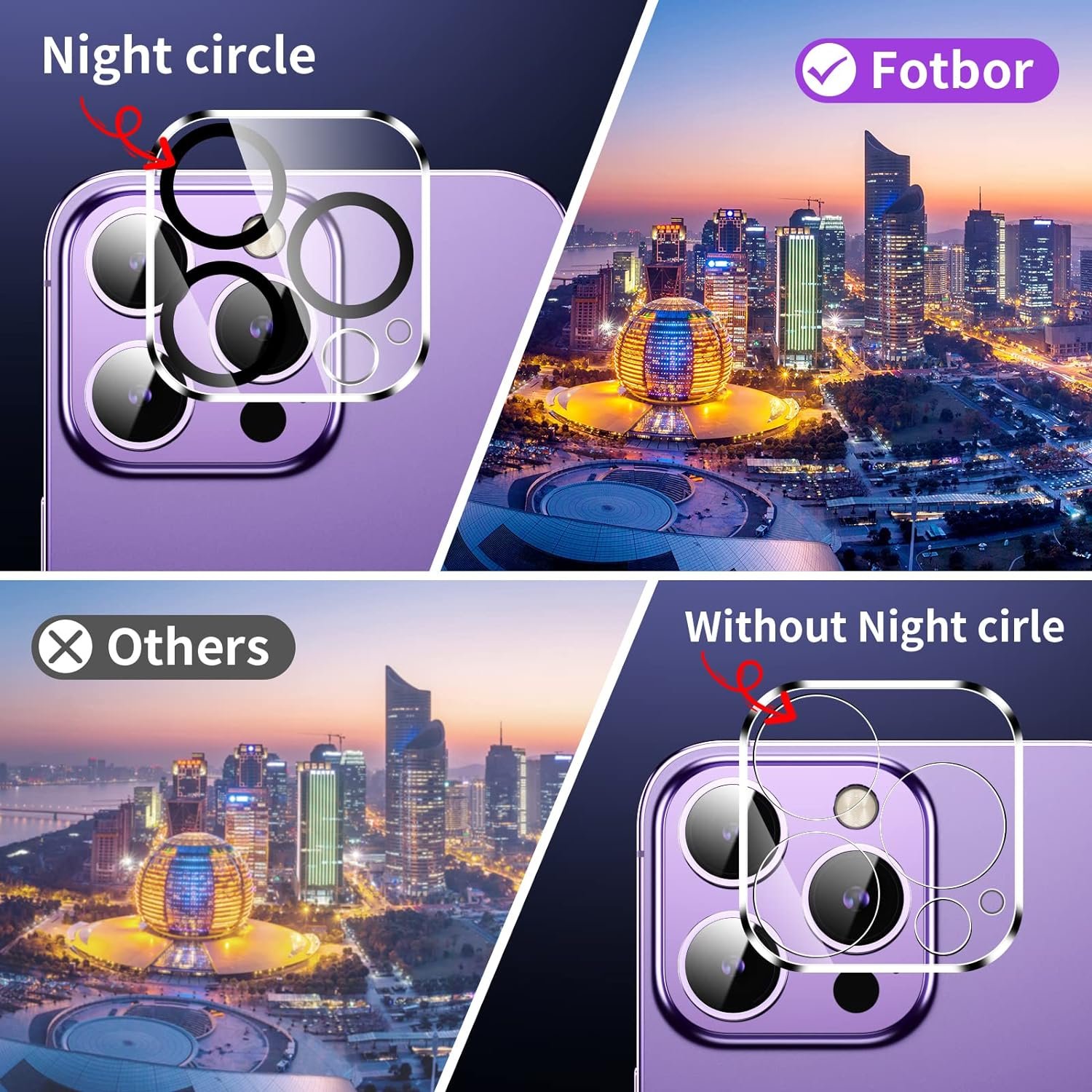 【Effectively Protect Your Camera Lens】 iPhone 14 Pro Max camera lens protector made of 9H glass effectively protect entire lens from drops, scratches, other accidents and not easy to fall off. Special designed Black circle compatible night shooting function, brings you the original of beauty to every photo and video. This camera and screen protector designed to be compatible with most cases.
