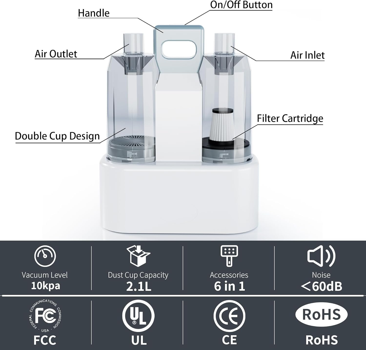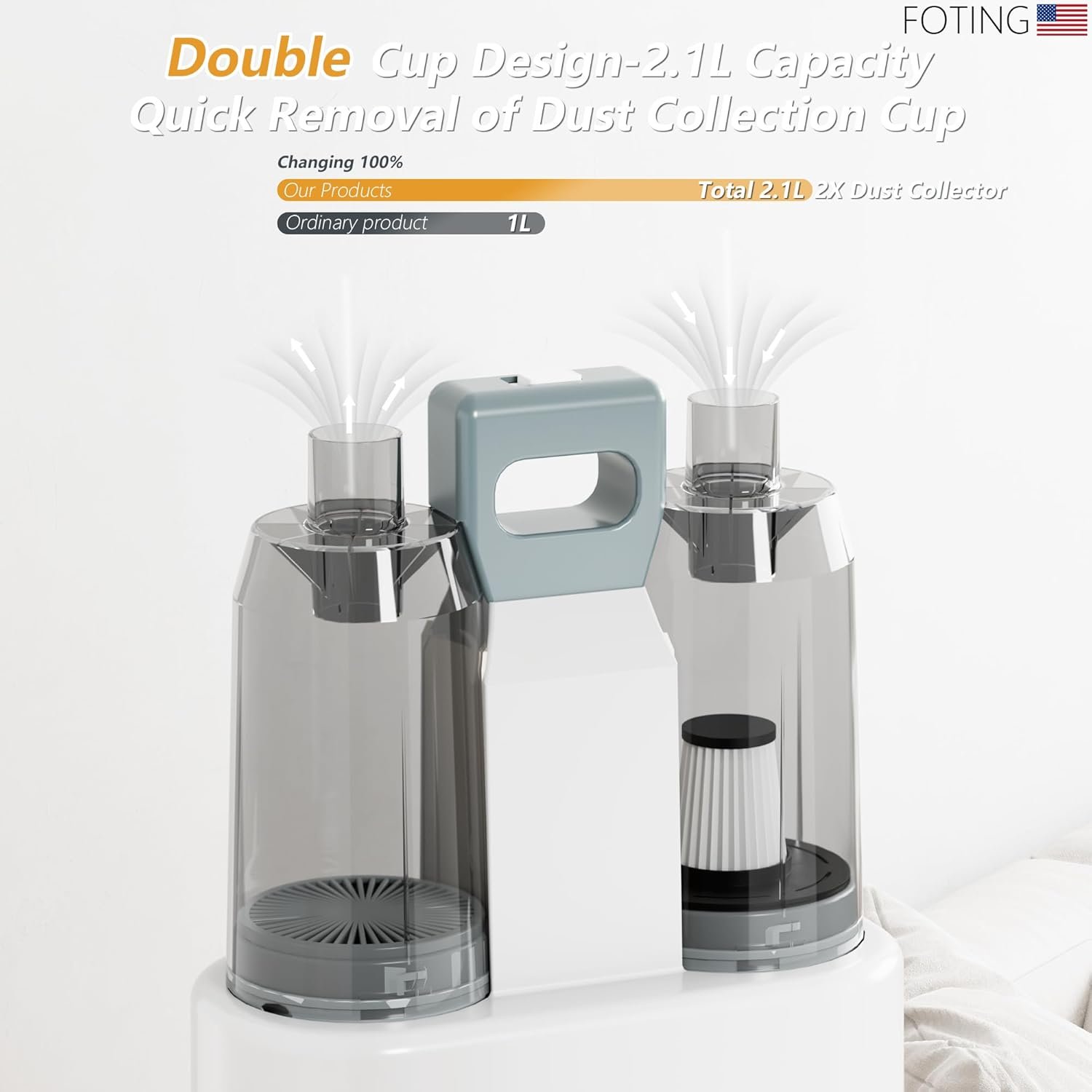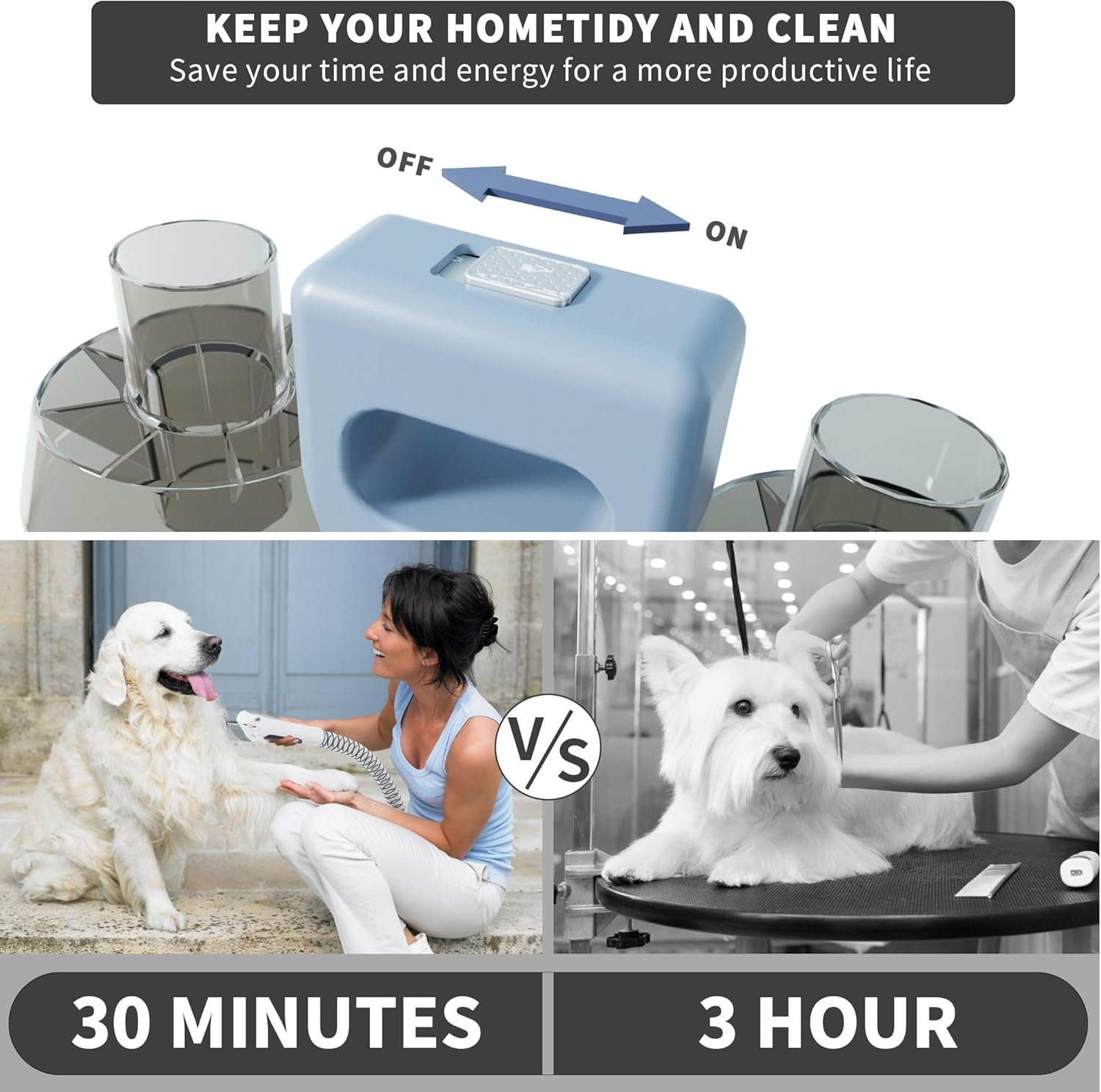 2.1L Double Dust Cup Design: FOTING dog grooming kit cleaner comes with two separated dust collection cups and two hoses(5 FT), with a combined capacity of 2.1L. You don’t have to empty cups and load and unload tubes as often, making it easier and faster.