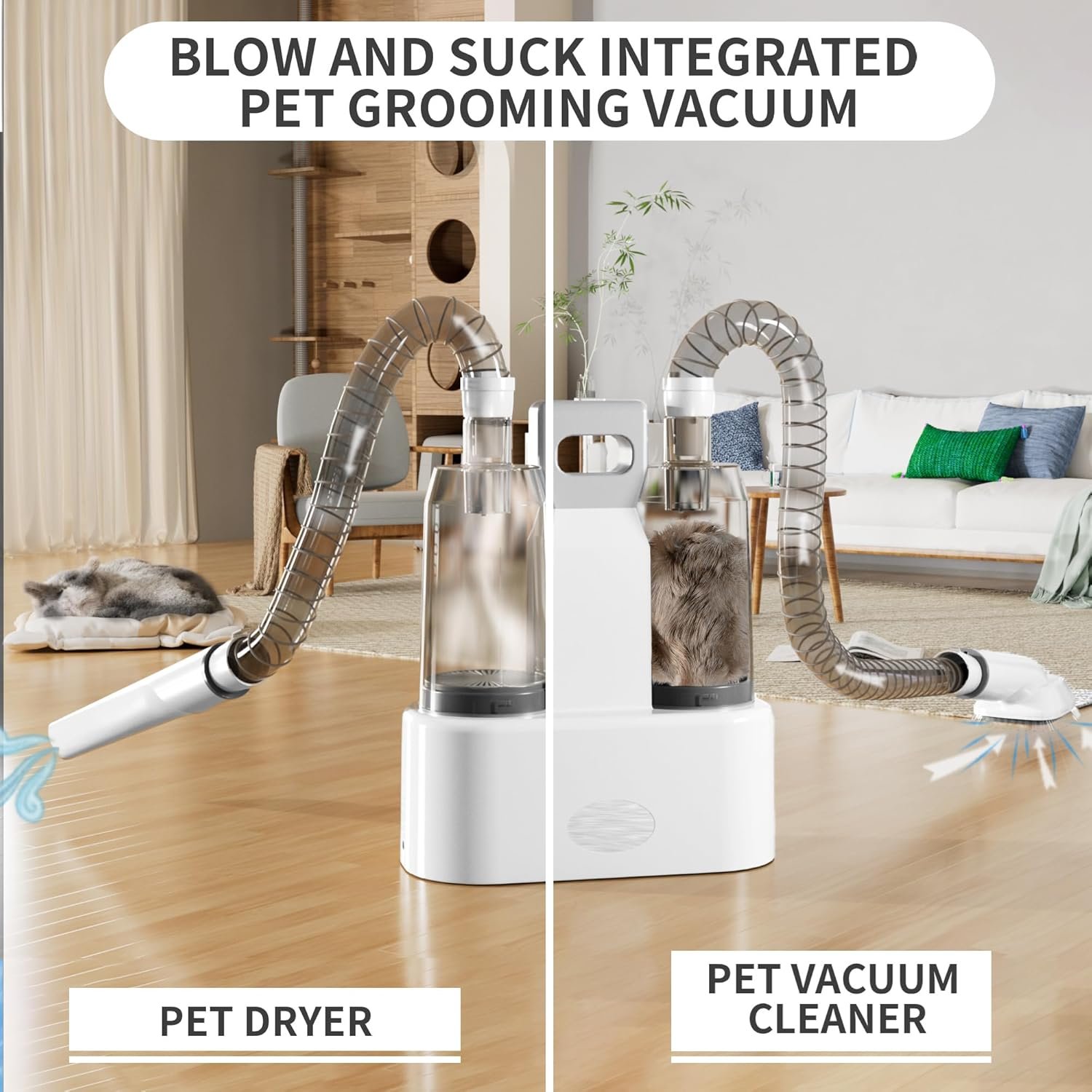 Blow-Drying & Suction in One: Our pet grooming vacuum for dogs can be used alone or in combination with vacuum mode. While drying the dog’s hair, it absorbs the removed hair at the same time to achieve the perfect combination of grooming and cleaning.