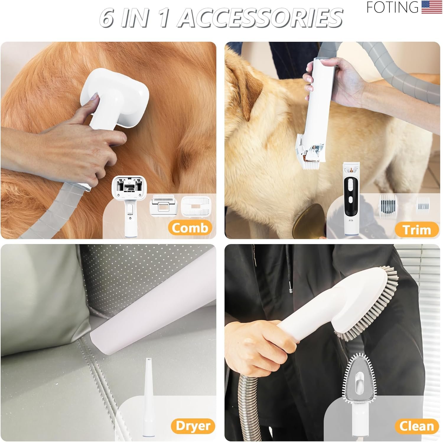 Low Noise, Won’t Scare Pets: Enjoy a low noise dog hair vacuum experience for your pets with the FOTING pet grooming vacuum, which operates at less than 60 dB to prevent scaring your furry friend.