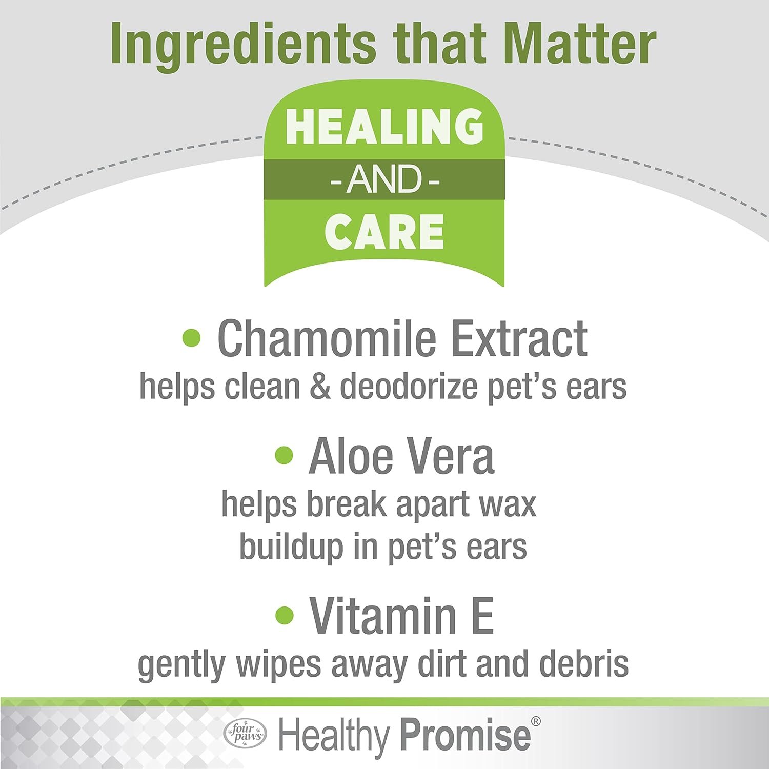 Driven by the passion to keep our furry best friends thriving happily, Healthy Promise supplements and healing & care products help provide our pets a healthy, active, and fulfilling life. Help keep your pet’s ears clean and itch-free with Healthy Promise Cat & Dog Ear Wipes! Made with soothing Aloe Vera, Vitamin E, and Chamomile Extract, these ear wipes for dogs and cats gently relieve itching, deodorize, and help remove wax buildup. They’re free of harsh ingredients and gentle for everyday use. Add Healthy Promise Ear Wipes to your pet’s routine to keep their ears healthy and clean!