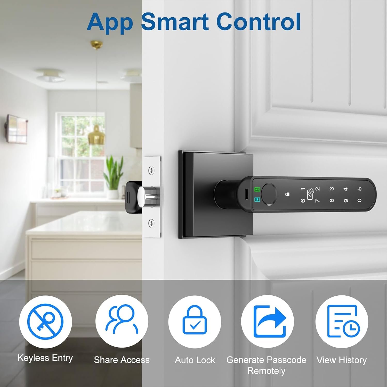Fingerprint Door Knob with App – Enhance Your Life with Smart, Secure Access bedroom door knobs with lock fingerprint App Access square black Smartphone Control