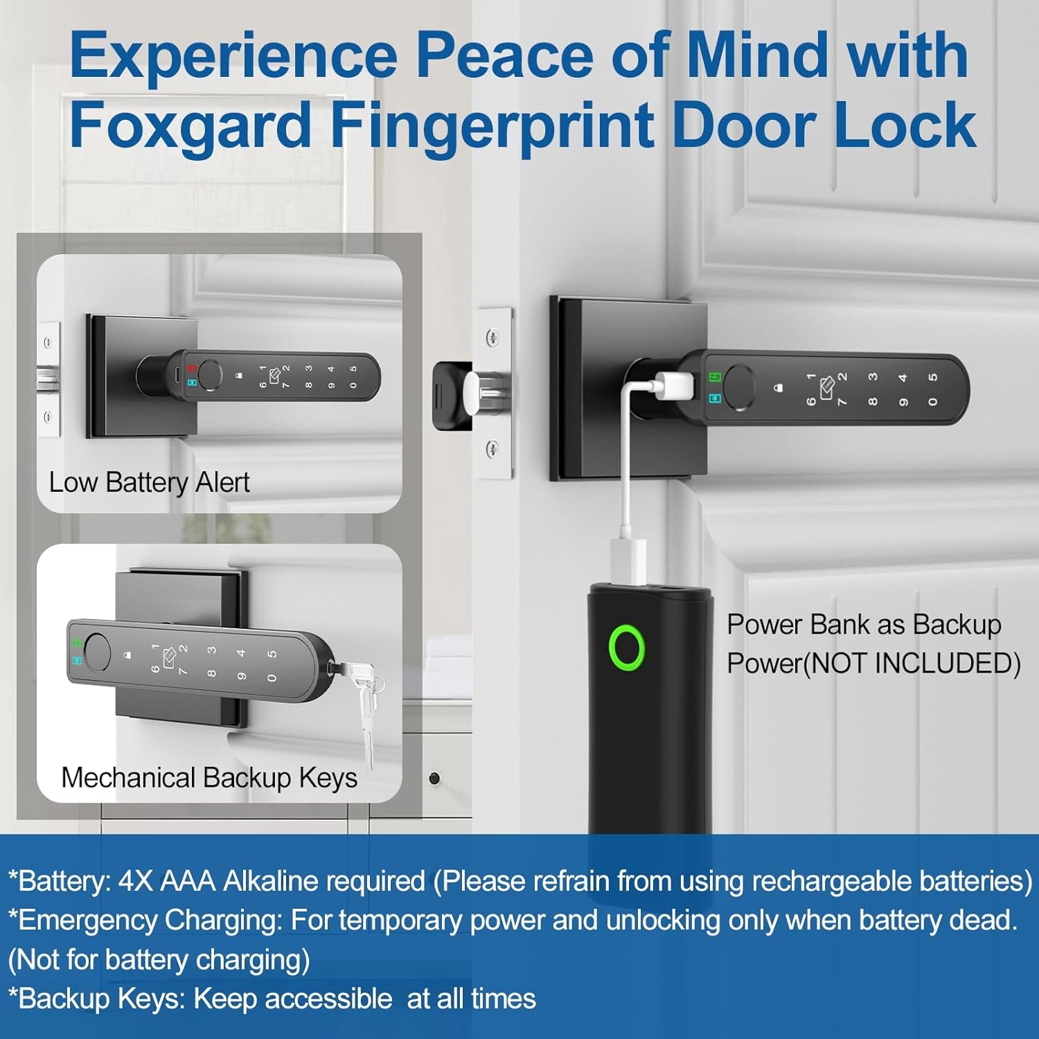 【Seamless Voice Control and Remote Access】When paired with the Foxgard Gateway (sold separately), enhance your smart home setup with voice control via Alexa or Google Assistant. Manage your biometric door knob from anywhere using the Tuya Smart App, giving you complete control over your property’s access.
