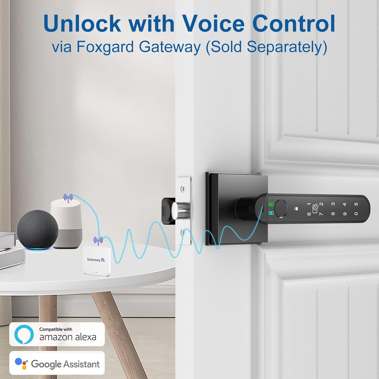 Enhance Your Remote Capabilities with Foxgard Gateway(Sold Separately) door lock bedroom smart door lock Alexa or Google voice control square black Integration with Alexa or Google Assistant