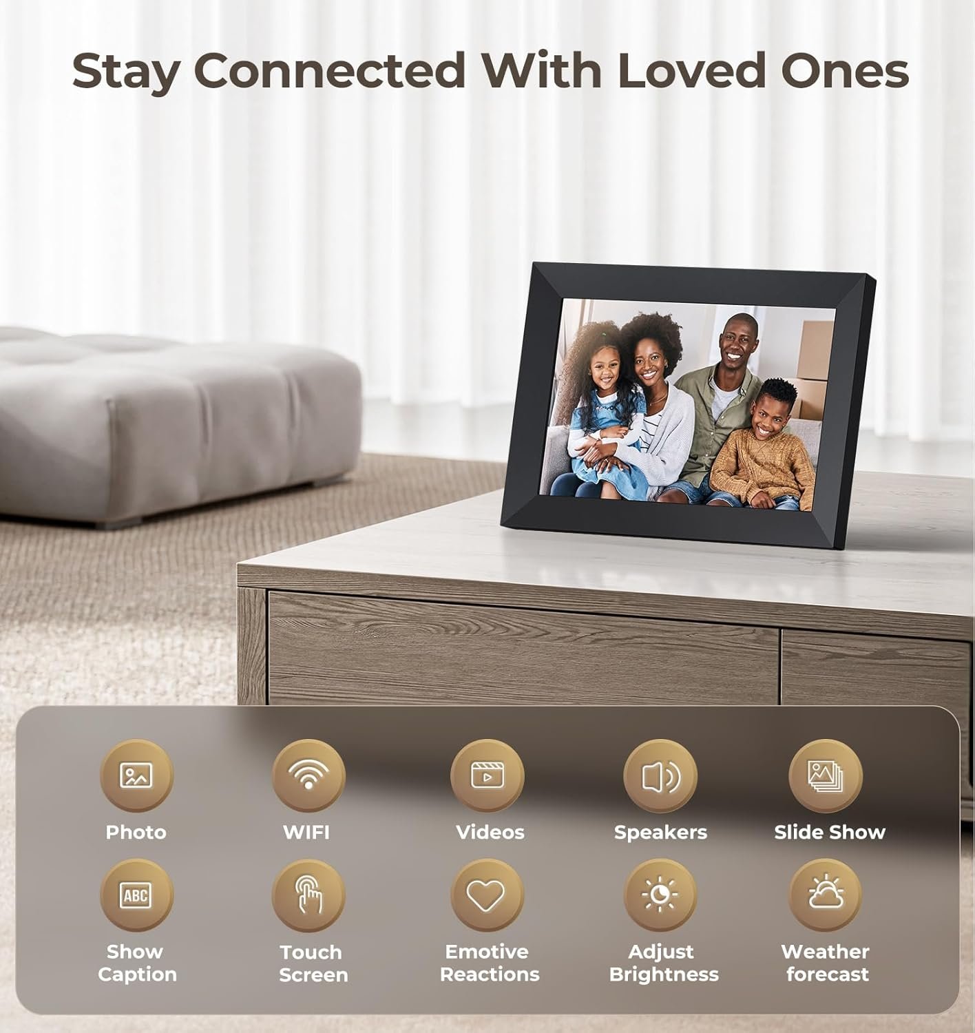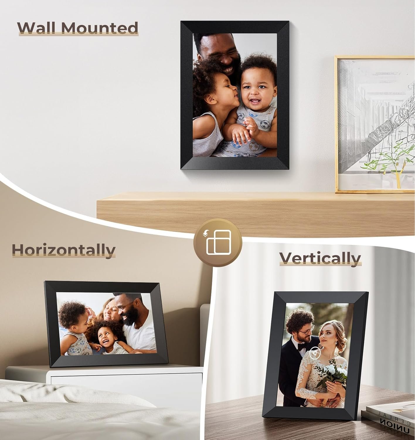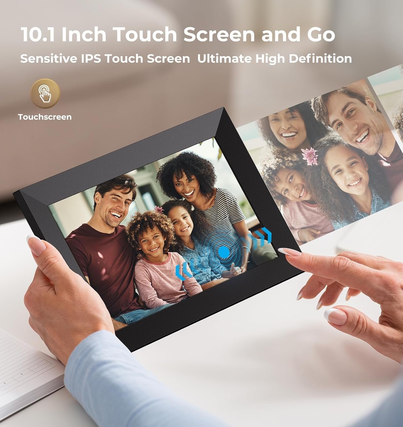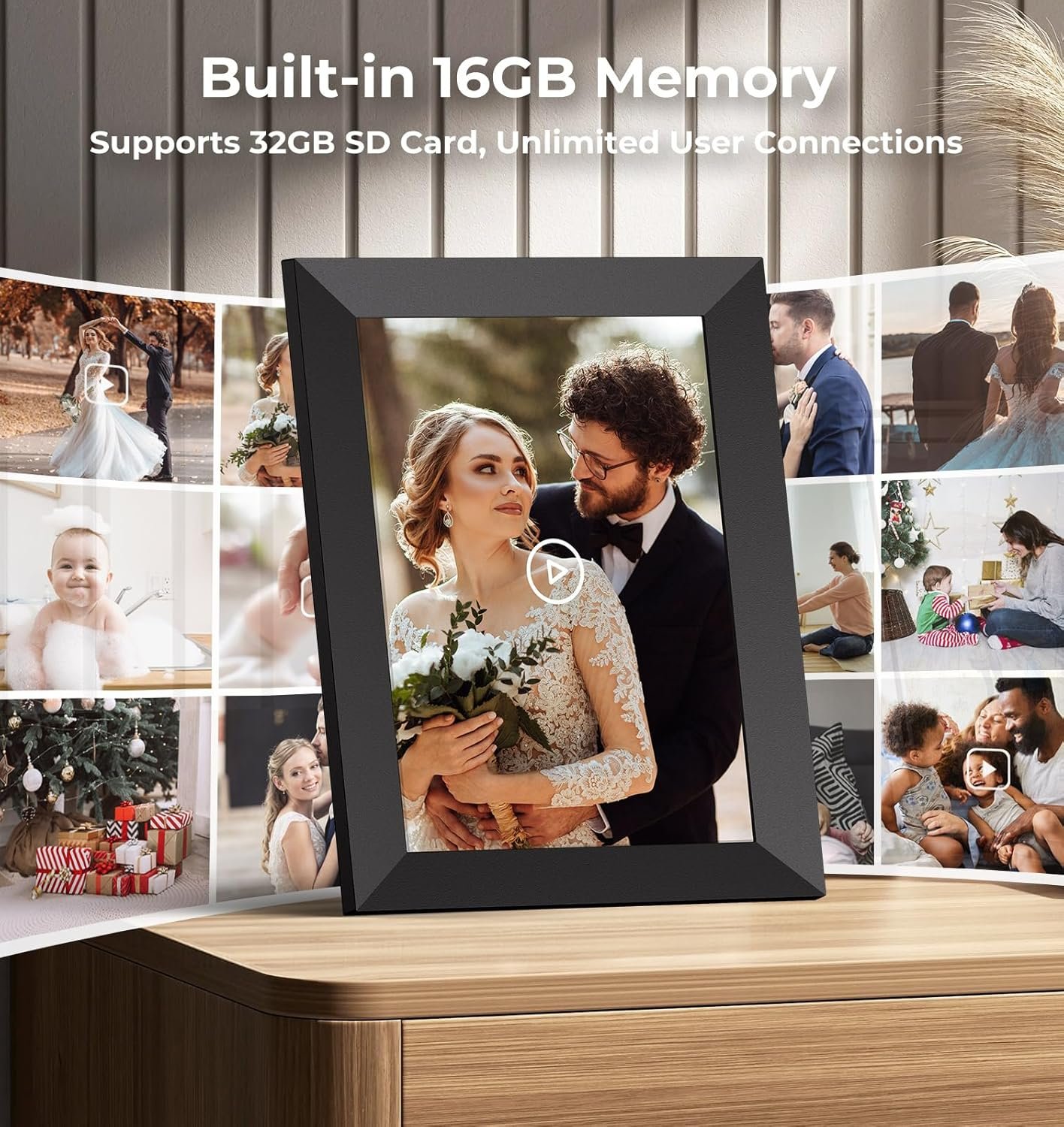 【10.1 INCH DIGITAL PICTURE FRAMES LOAD FROM PHONE】Our Wi-Fi digital picture frame boasts a 10.1-inch IPS HD touchscreen with a stunning 1280*800p resolution.The IPS technology provides a wide viewing angle and accurate color reproduction, so you can enjoy your cherished moments to the fullest.supports up to 1920 * 1080 (30FPS) video, JPEG /BMP/JPG/ PNG etc,MP4