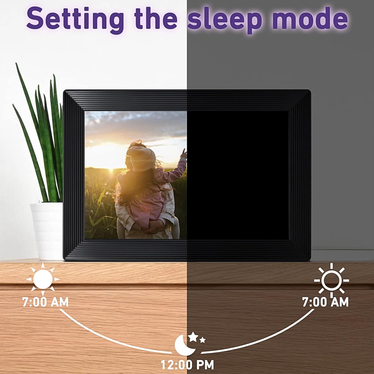 You can set the time for the frame to turn off automatically at night and open automatically during the day according to your own ideas