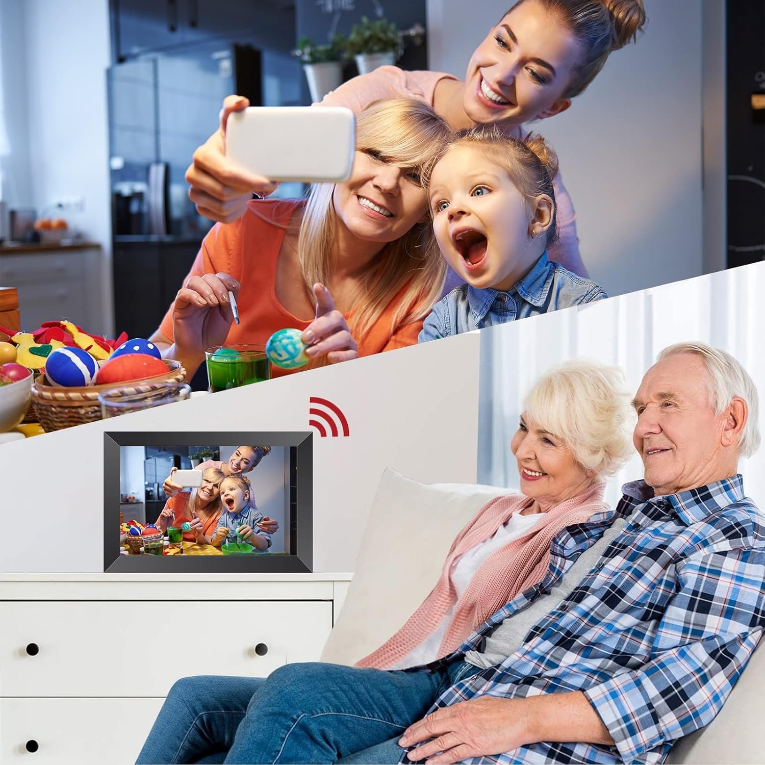 💕 [All-in-One Digital Picture Frame] 💕Digital photo frame remote upload.Our WiFi digital picture frame is not only beautiful outside but also powerful inside. It strongly packs all kinds of functions into its system, like photo, video, music, clock, calendar, weather, auto-rotation, image zooming, adjustable brightness, slideshow effect, etc.With this frame, you can actually sending some of the best photos instantly instead of spent a lot of time printing all of them and buy many frames to hanging. Save time and money.