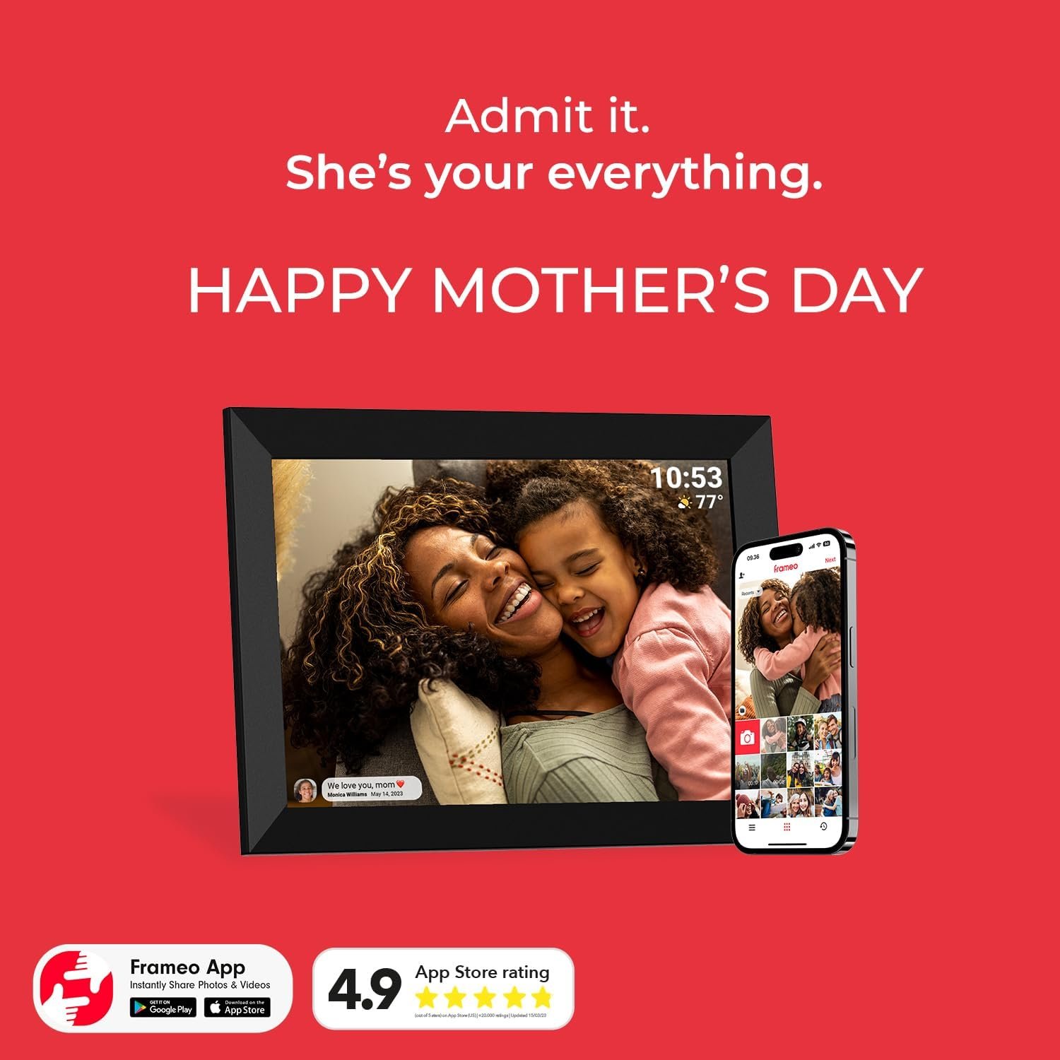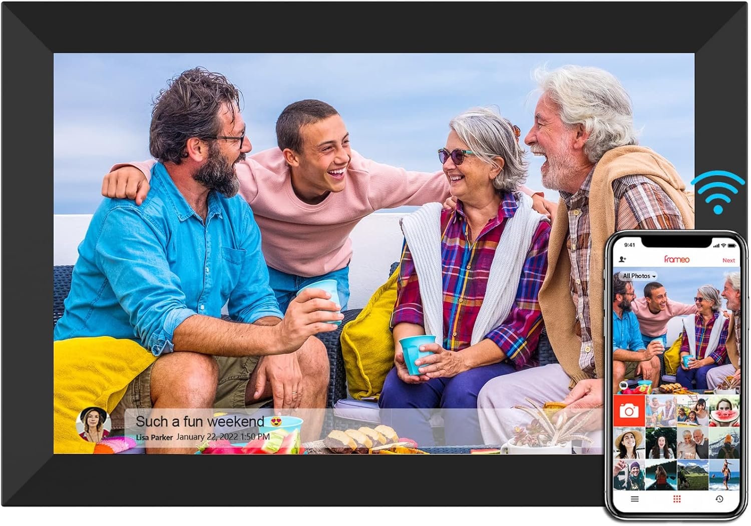 đ ăStunning Image ClarityăThe 10.1 inches Frameo WiFi digital photo frame with HD IPS touchscreen, with a 16:10 ratio and 1280Ă800 resolution, delivers crystal-clear picture and video quality. Enjoy a remarkable viewing experience from any angle, with a wide 178° viewing angle.