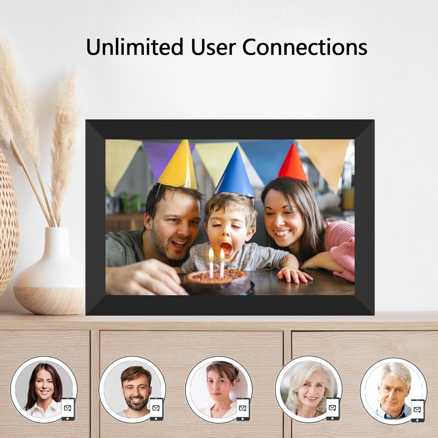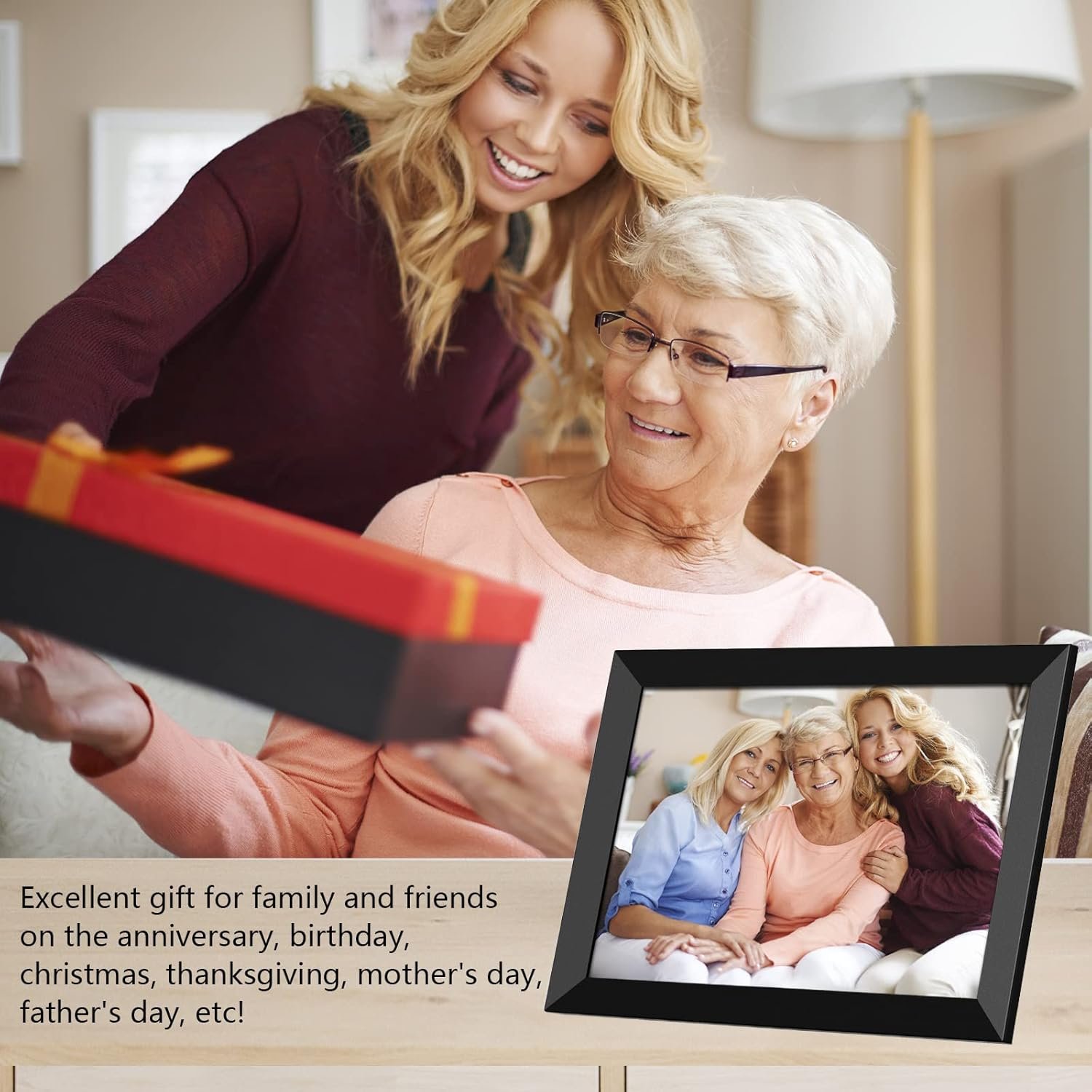 DIGITAL PICTURE FRAME TO KEEP CONNECTED: Frameo allows you to easily share photos with friends and family. Send photos directly from your smartphone to the YENOCK WiFi digital photo frame, allowing friends and family to share your best moments! Additionally, it is a good digital picture frame for the elderly who are not good at using smart phones to stay connected with the younger generation. The YENOCK digital photo frame is a social gathering place for the whole family to share their love.