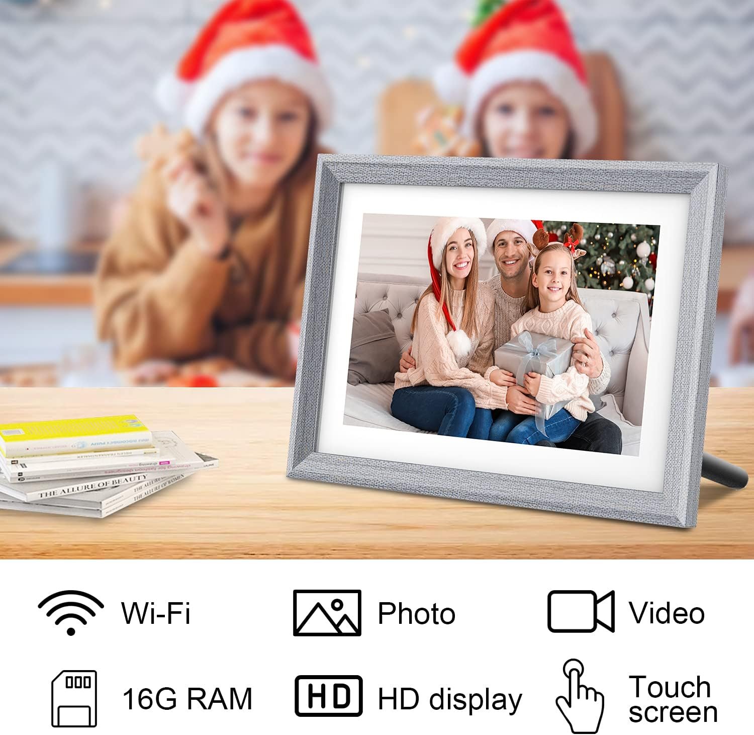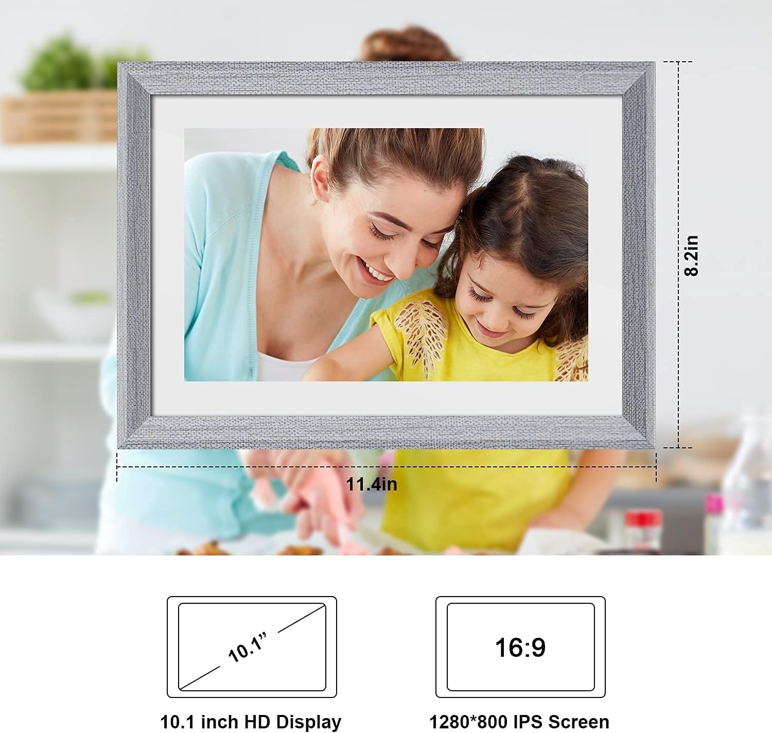 High Definition Touch Screen:the photo frame electronic with 1280*800 intuitive 10.1″ IPS HD touch screen can display amazing clear and vivid landscape and portraits,resolution stays clear in any light, recalling your precious memories. Browse through photos, delete videos, or pause the slideshow, with a quick tap of the finger.
