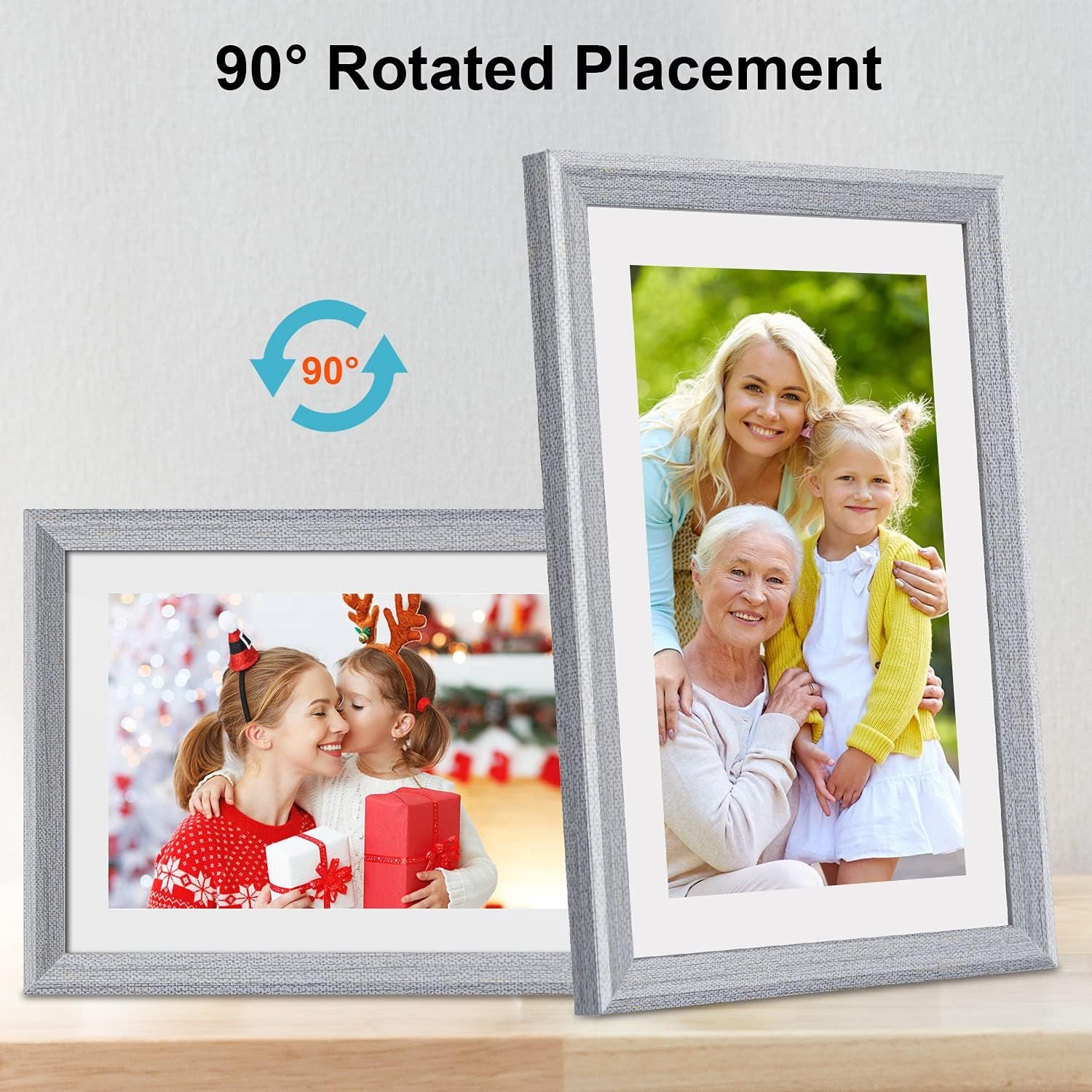 Auto-Rotate And Internal Storage:digital frame can automatically rotate photos,which allows you to place the WiFi Digital Picture Frame in either portrait or landscape mode or on the wall. This frame built-in 16GB memory (around 40,000 photos of 300KB/pc) and supports up to 32GB,It also supports the SD card drive connectivity to enable you to read the files and export the received photos and videos for album management.
