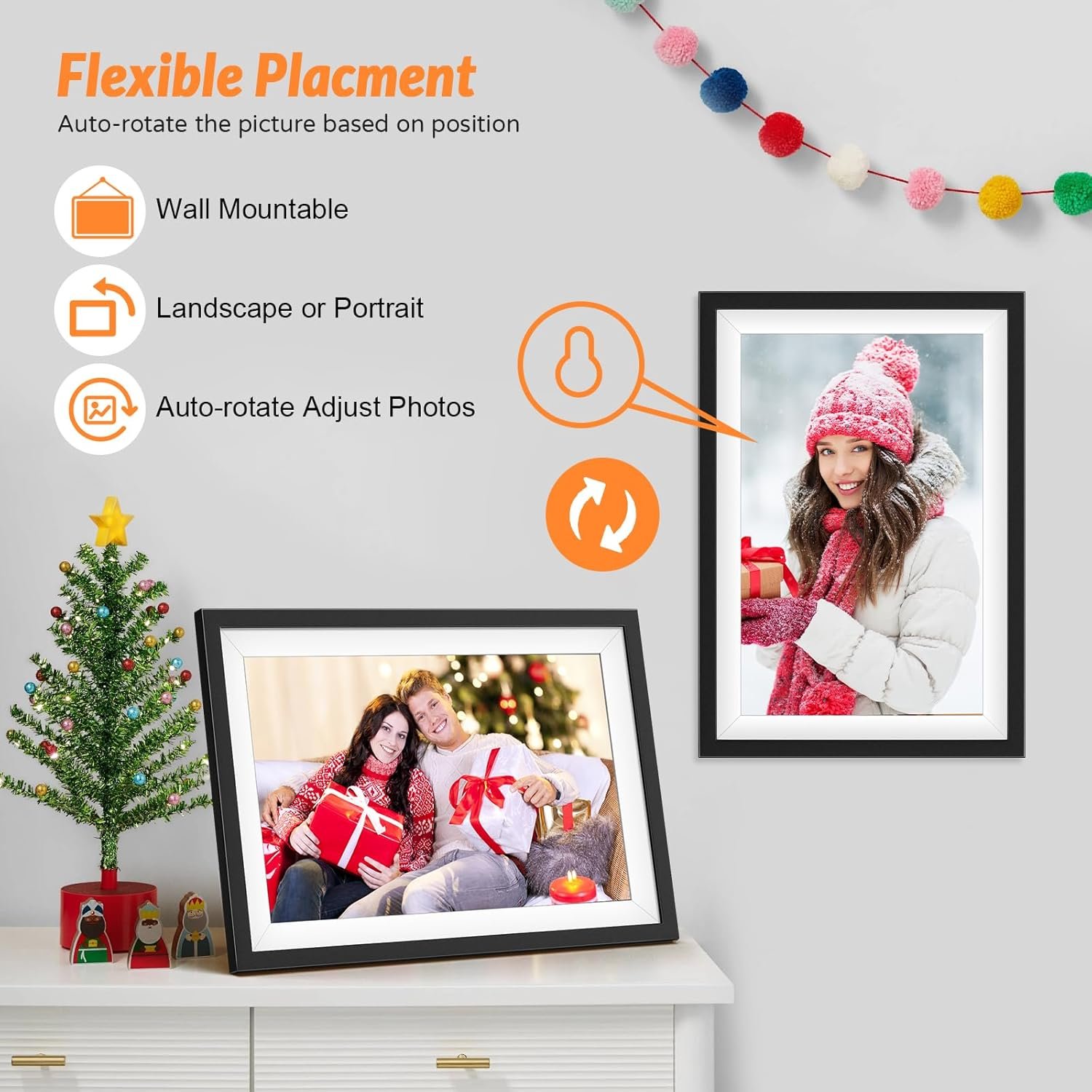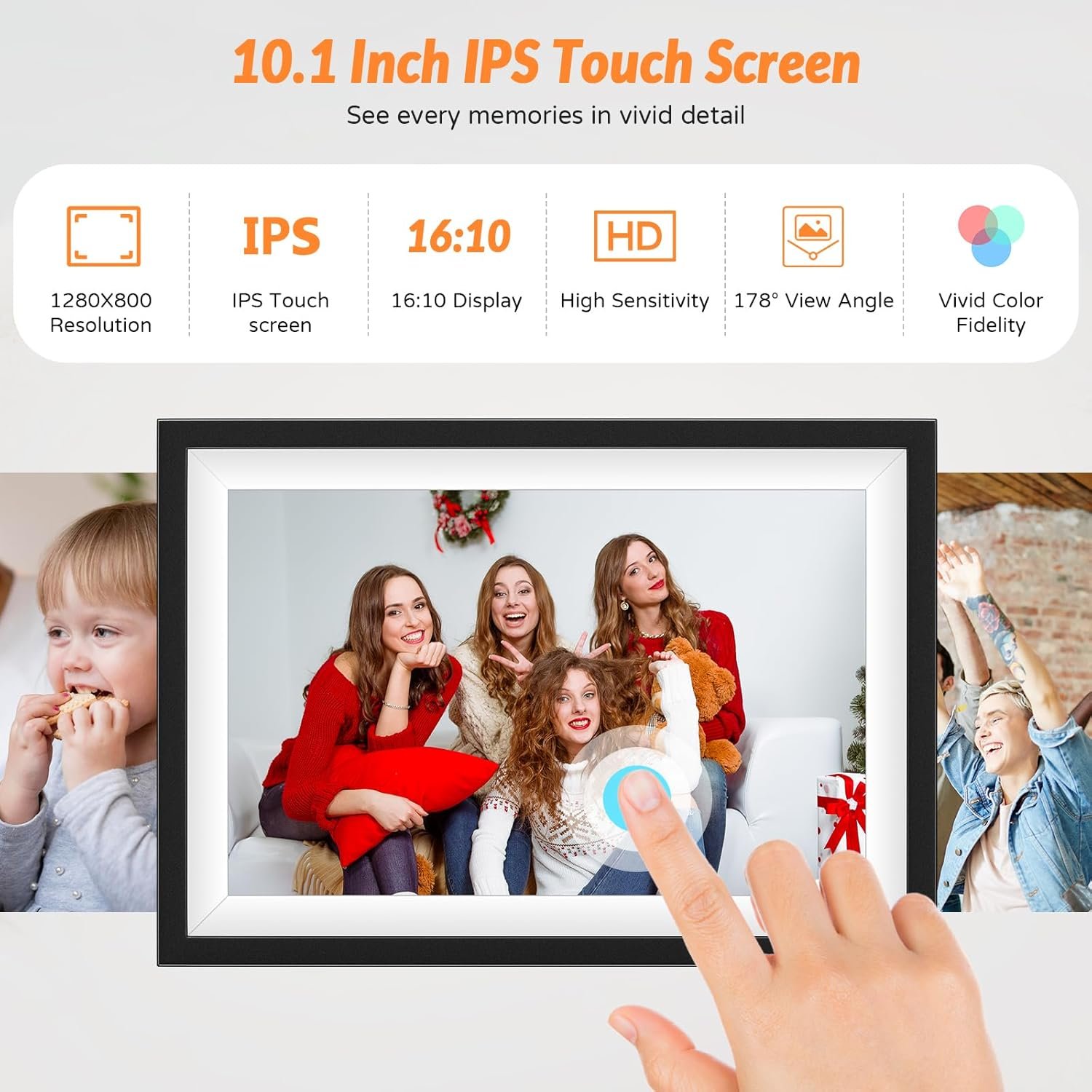 Stunning Display Quality: Featuring a 10.1-inch IPS touchscreen with a resolution of 1280×800,digital picture frame offers an impressive viewing angle of up to 178°. Digital picture frames support various photo formats (JPG/JPEG/BMP/PNG) and MP4 video format, making your memories come to life in vivid detail. Experience the beauty of your photos and videos like never before.