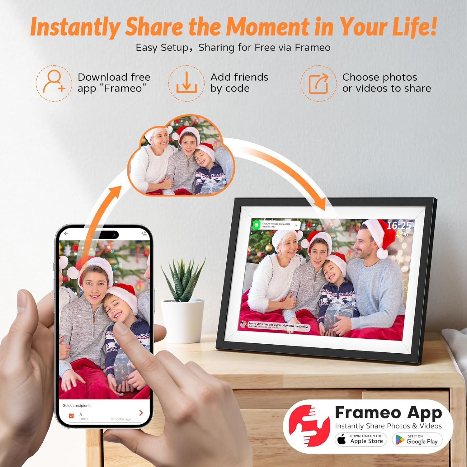 Private and Secure Sharing: Easily connect your digital photo frame to WiFi and download the fr-ee “Frameo” app for Android and iOS. Frameo allows you to send photos or videos (up to 15 seconds) to your digital frame from anywhere in the world.You can also invite friends and family to join your wifi digital picture frame,ensuring absolute privacy.Only those people you add can access your digital picture frame,no worry to share your memories.