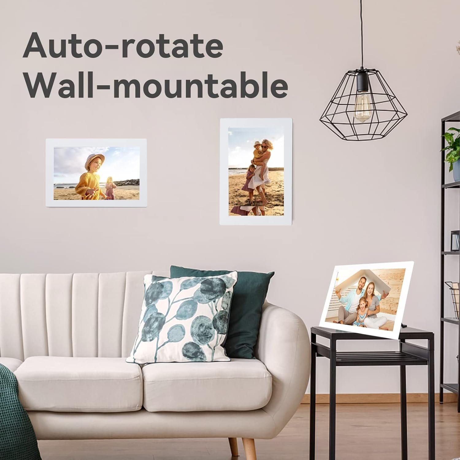 The frameo digital picture frame has built-in gravity sensing, the photos can be self-applied to the frame, you can place it in any direction as needed.