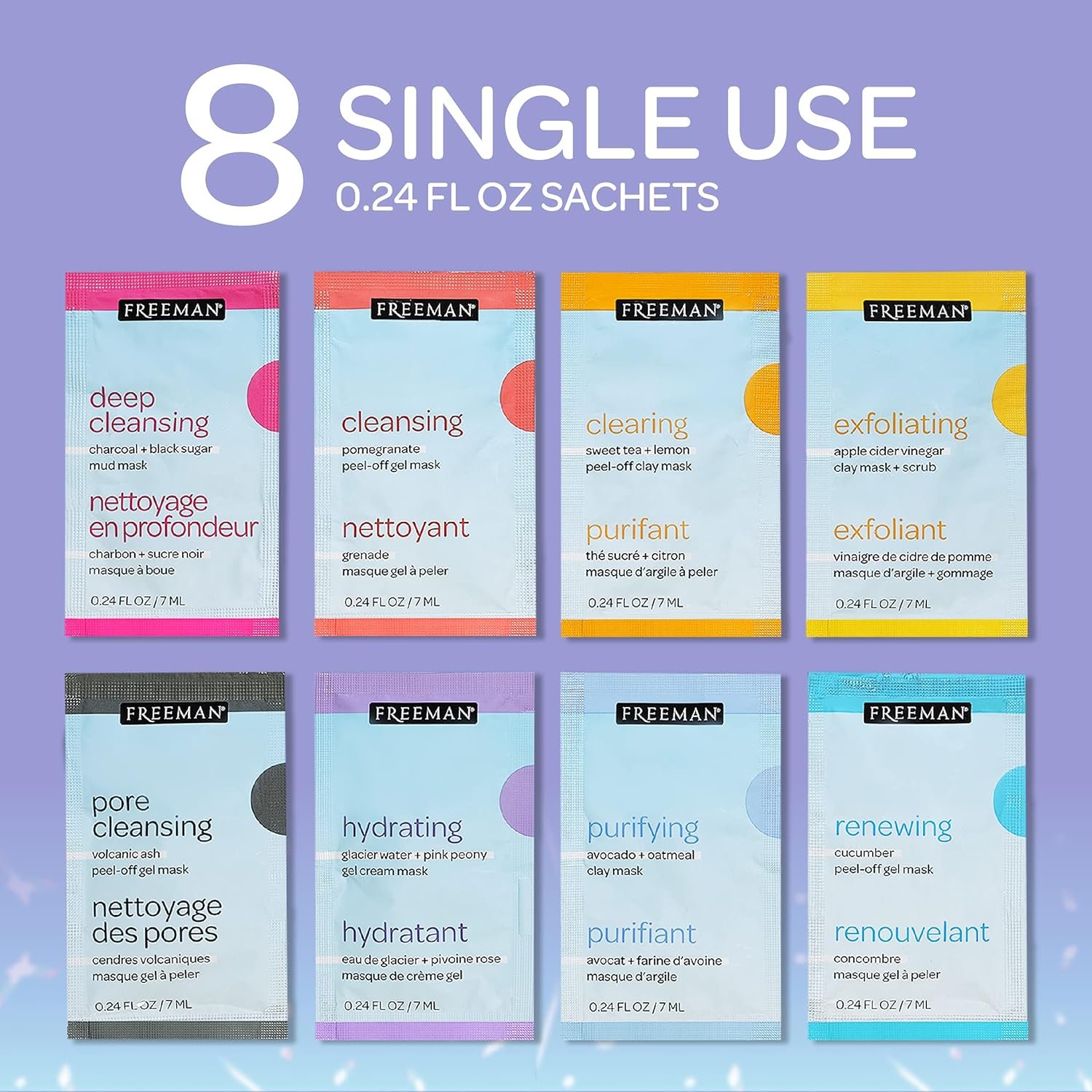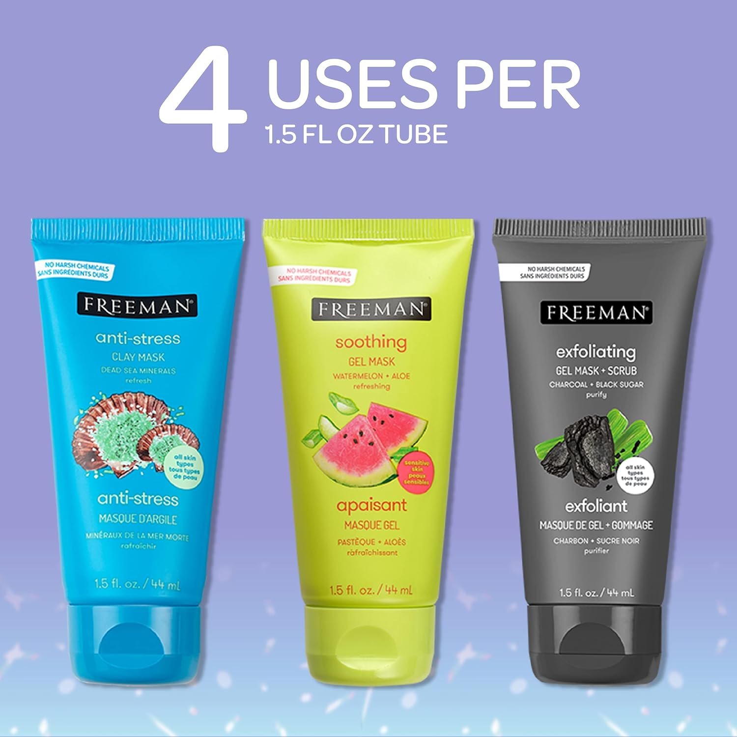 Give the gift of relaxation this holiday season with this renew and relaxing mask kit, which includes a full assortment of masks for all your skin needs. The kit includes twelve mini sachets, which are great for on-the-go use or for trial for new masking users, three mini- tubes in our new clean formula (up to 4+ uses) and a bonus silicone facial scrubber. Mix and mask this holiday season and discover your favorites! Since 1976, Freeman has created feel-good formulas that seriously work (without losing all the fun!). We believe skincare belongs to everyone and strive to democratize beauty with affordable products. In our minds, clear skin = a clear conscious. Our top priority is ensuring our products are efficacious and full of good-for-you ingredients. Our new formulas are always dermatologist tested, free of parabens, sulfates, phthalates and mineral oil. We love our furry friends, too, and are proudly cruelty-free and never test on animals. From breakouts and blemishes to sensitive and dull complexions, we’re here to educate you on how to take care of your unique skin. We believe skincare is more than a routine… It’s about feeling good from the inside out!