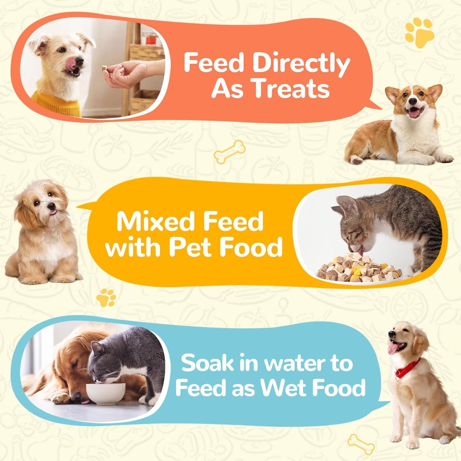 Variety of Flavor: Whether given whole, crumbled for added flavor, or rehydrated to enhance the meaty aroma, PAWUP freeze dried treats offer a variety of feeding options. You can also choose different freeze dried treats from PAWUP to supply multiple flavor and comprehensive nutrition to your beloved furry pets