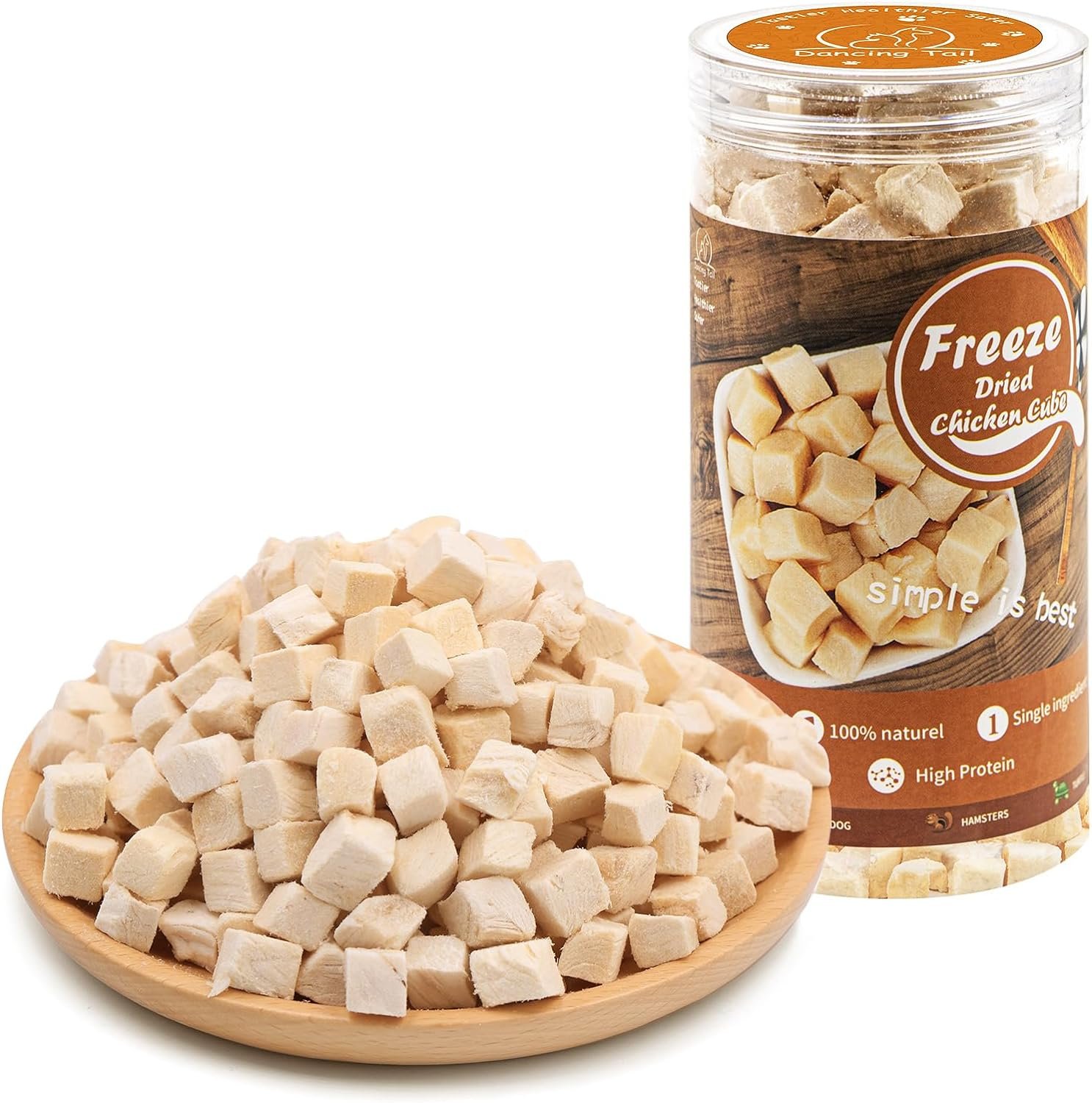 Purr-fectly Irresistible Treats. Treat your pets to irresistibly delicious Freeze Dried Chicken Cubes! Crafted from premium chicken, these cubes are a purr-fectly satisfying and healthy snack for both cats and dogs.