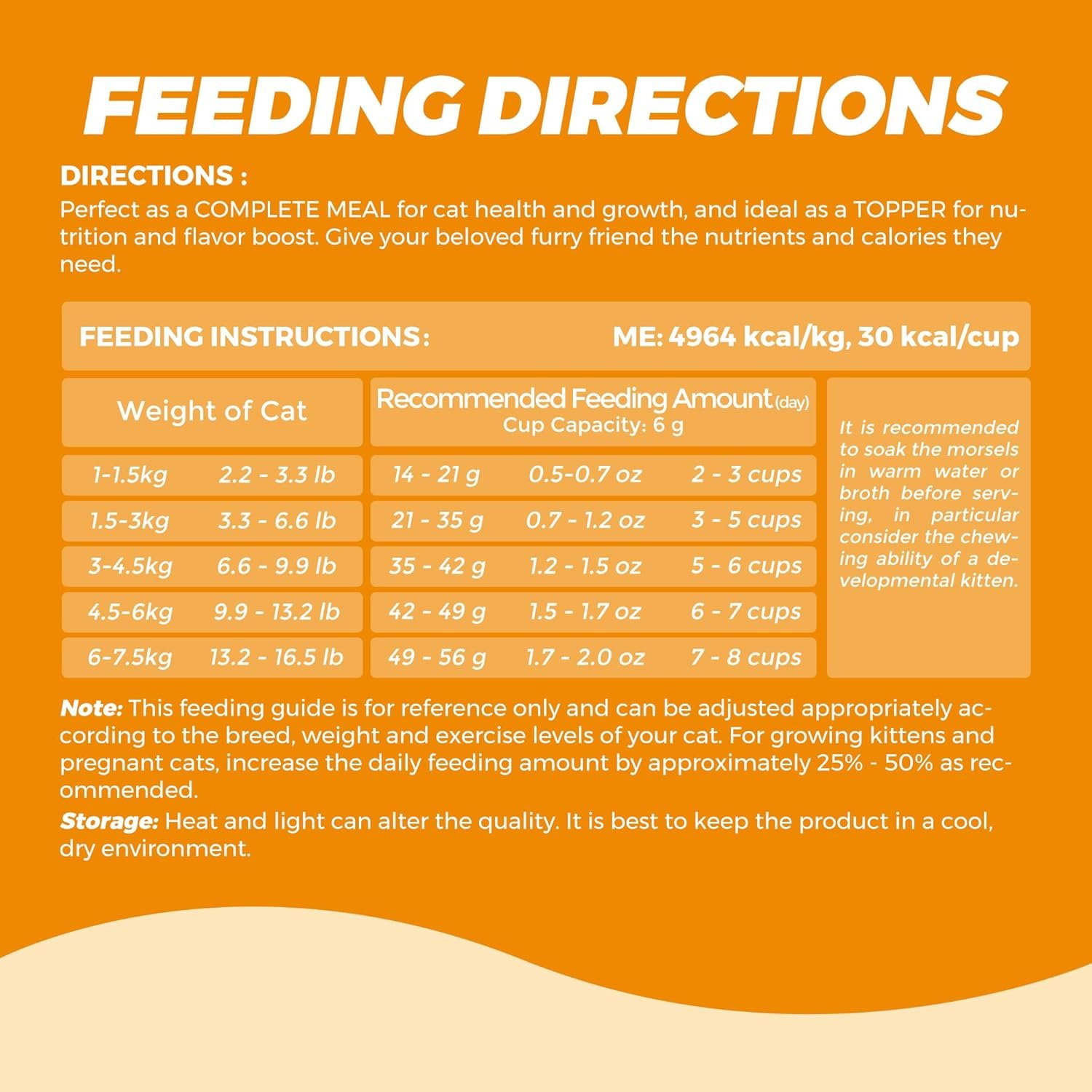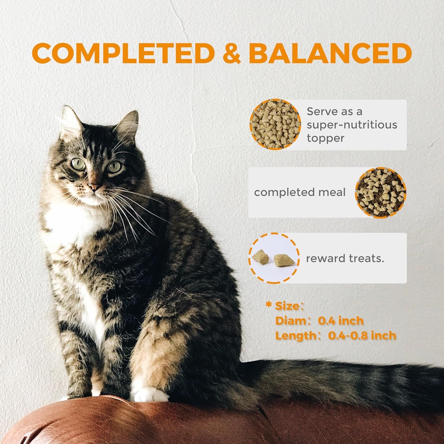 100% FREEZE-DRIED: State-of-the-art freeze-drying technology retains nearly 100% the food’s nutritional status, locks in the nutrients, and offers a different take on raw food! Our freeze dried cat food toppers are made with pure, natural ingredients, with no added fillers, grains, cereals, fillers, or artificial preservatives