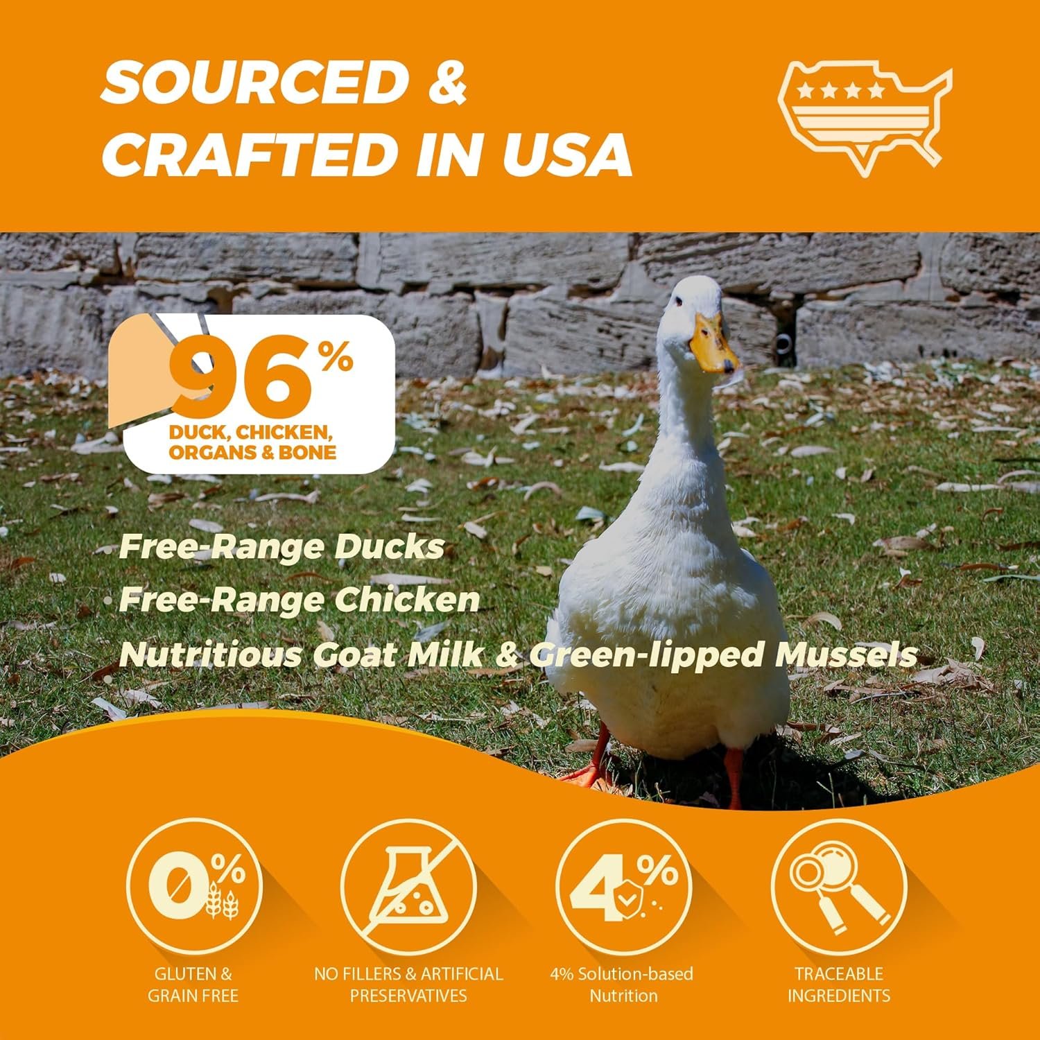 Freeze Dried Raw Cat Food Duck and Chicken Recipe 16 Ounce, USA Made High Protein Grain Free Cat Food for Complete Meal or Food Topper, Freeze Dried Raw Diet for Grow & Thrive