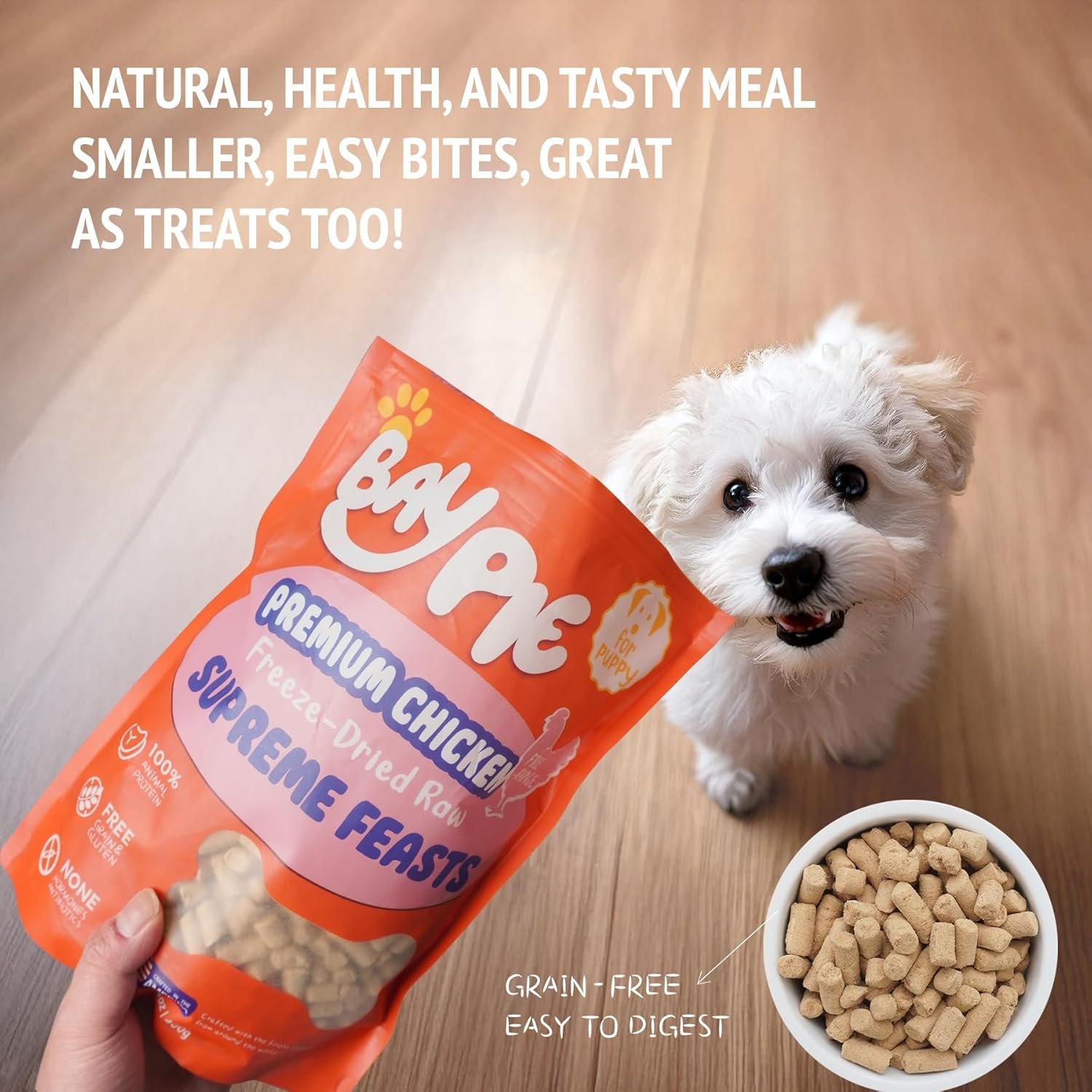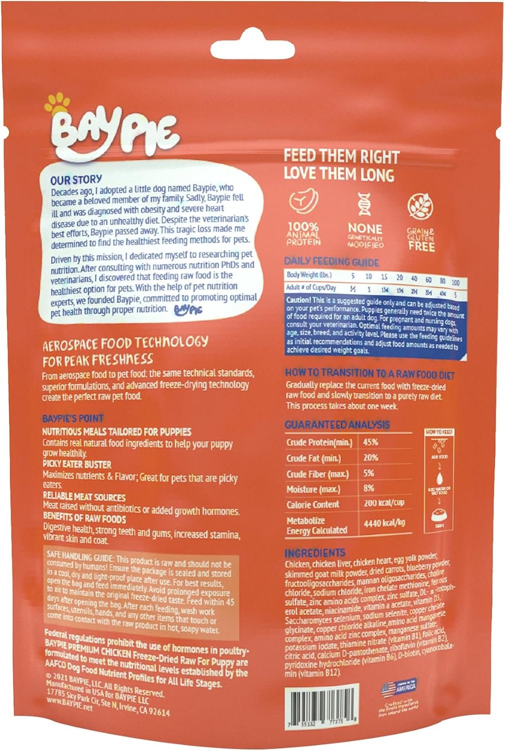 A Balanced Meal for Your Puppy! -Made of 95% cage-free chicken, organs, and functional ingredients, formulated specifically for puppies with DHA, Vitamin E, and High protein to help aid body and brain development, and provide essential nutrients for enhanced vitality. Perfectly as tasty freeze-dried puppy treats, food toppers, or a complete meal