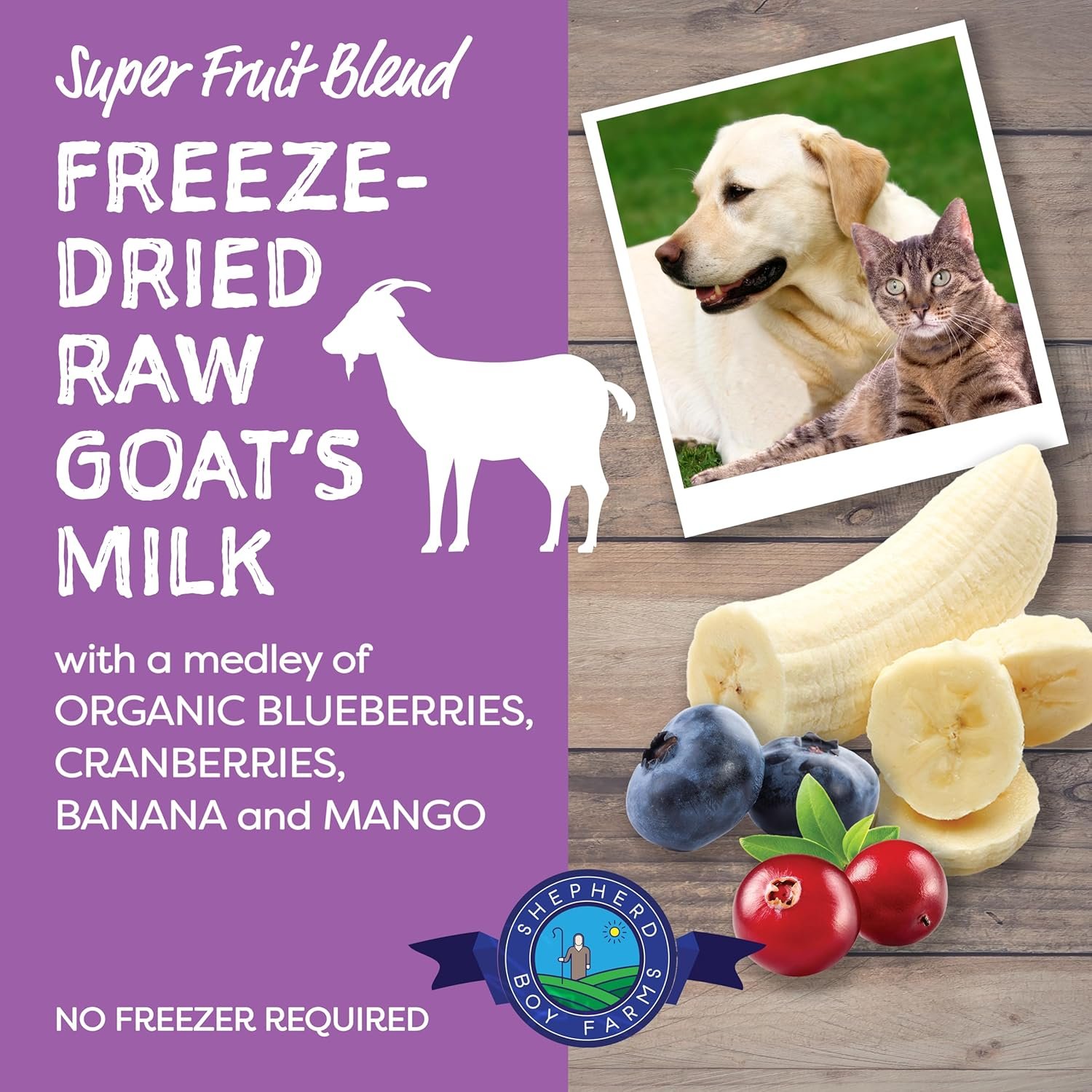 ALL-NATURAL GOAT MILK POWDER FOR DOGS & CATS. Pure milk from pasture-fed goats raised without antibiotics or added hormones, gently freeze-dried to preserve nutrients and flavor