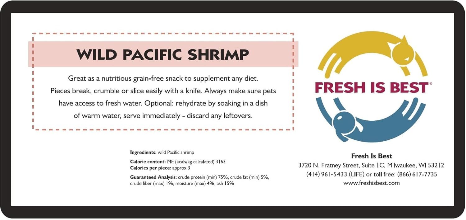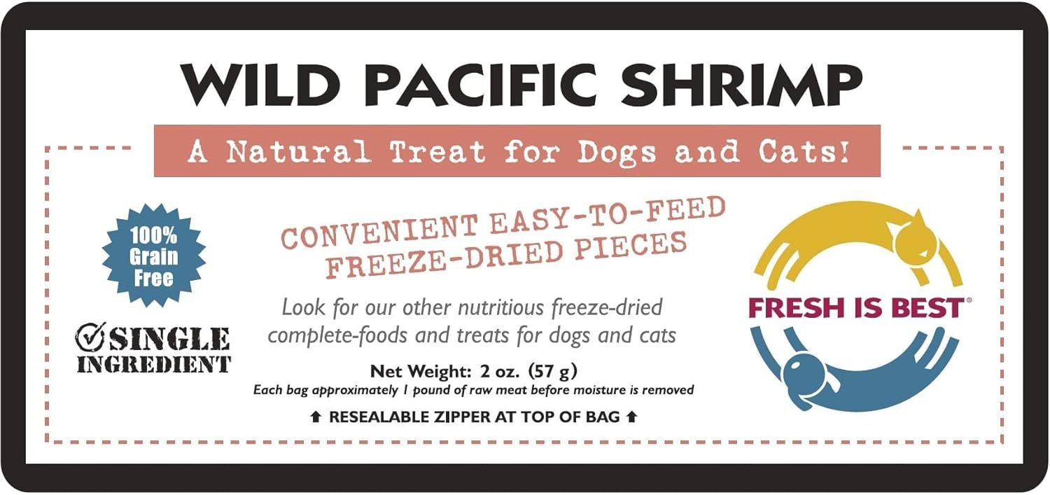 Wild Pacific Shrimp – This 2 oz bag contains only fresh freeze dried high quality wild caught pacific shrimp. All natural raw meat, no added hormones, preservatives, or fillers. 100% grain, gluten and starch free, human quality ingredients.