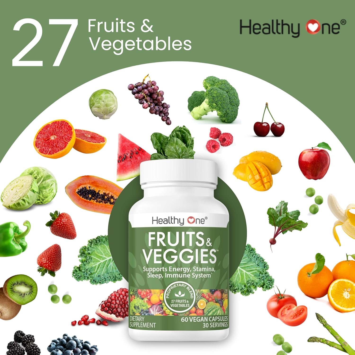SUPER FRUITS AND VEGGIES CAPSULES: Healthy One Daily Fruits and Veggies Supplement is crafted from 27 all-natural veggies and fruits extracts. Our superfood capsules boast a rich combination of Vitamin C, Vitamin B-3, Vitamin B-6, Magnesium Glycinate, and Zinc.