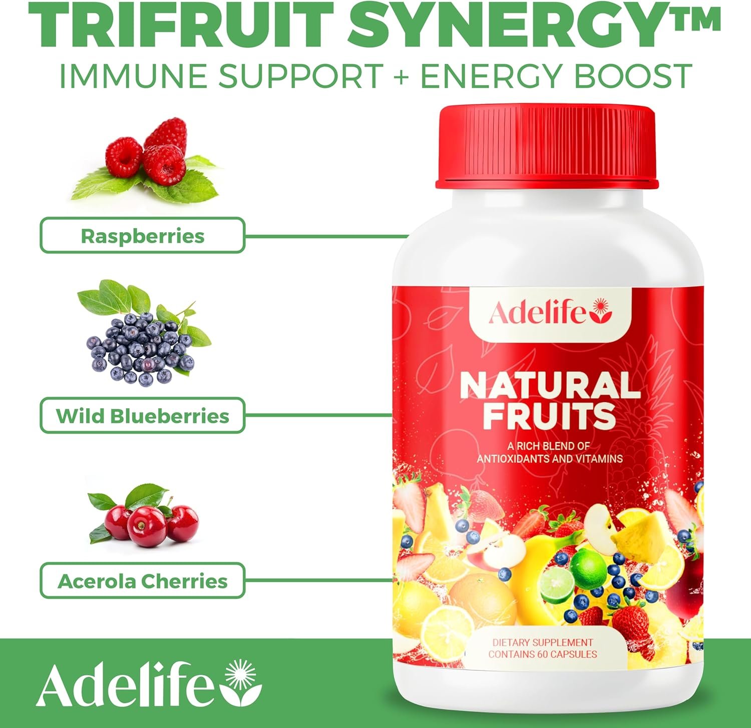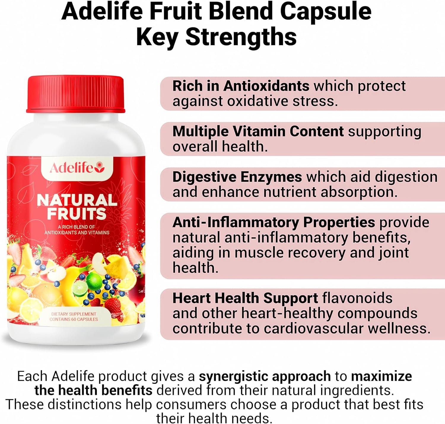 WHY CHOOSE ADELIFE? Adelife combines Trifruit Synergy for immune support and energy with Alkiveg for pH balance, inflammation reduction, and detoxification. Together, these blends provide a broad spectrum of nutrients for a comprehensive health boost, leveraging nutritional synergy for maximum nutrient absorption.