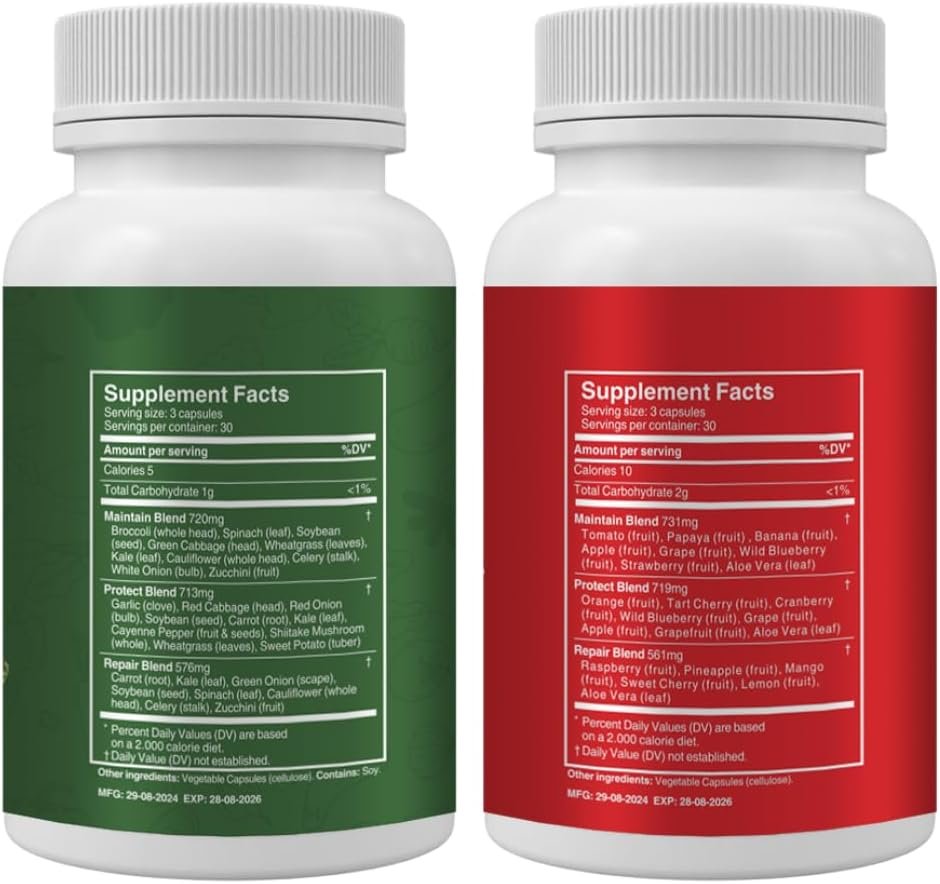 Supports Overall Wellness: Promotes energy, immune health, digestion, heart health, and healthy response. Convenient and Easy: Just two capsules a day help ensure you will get a balanced intake of fruits and veggies.