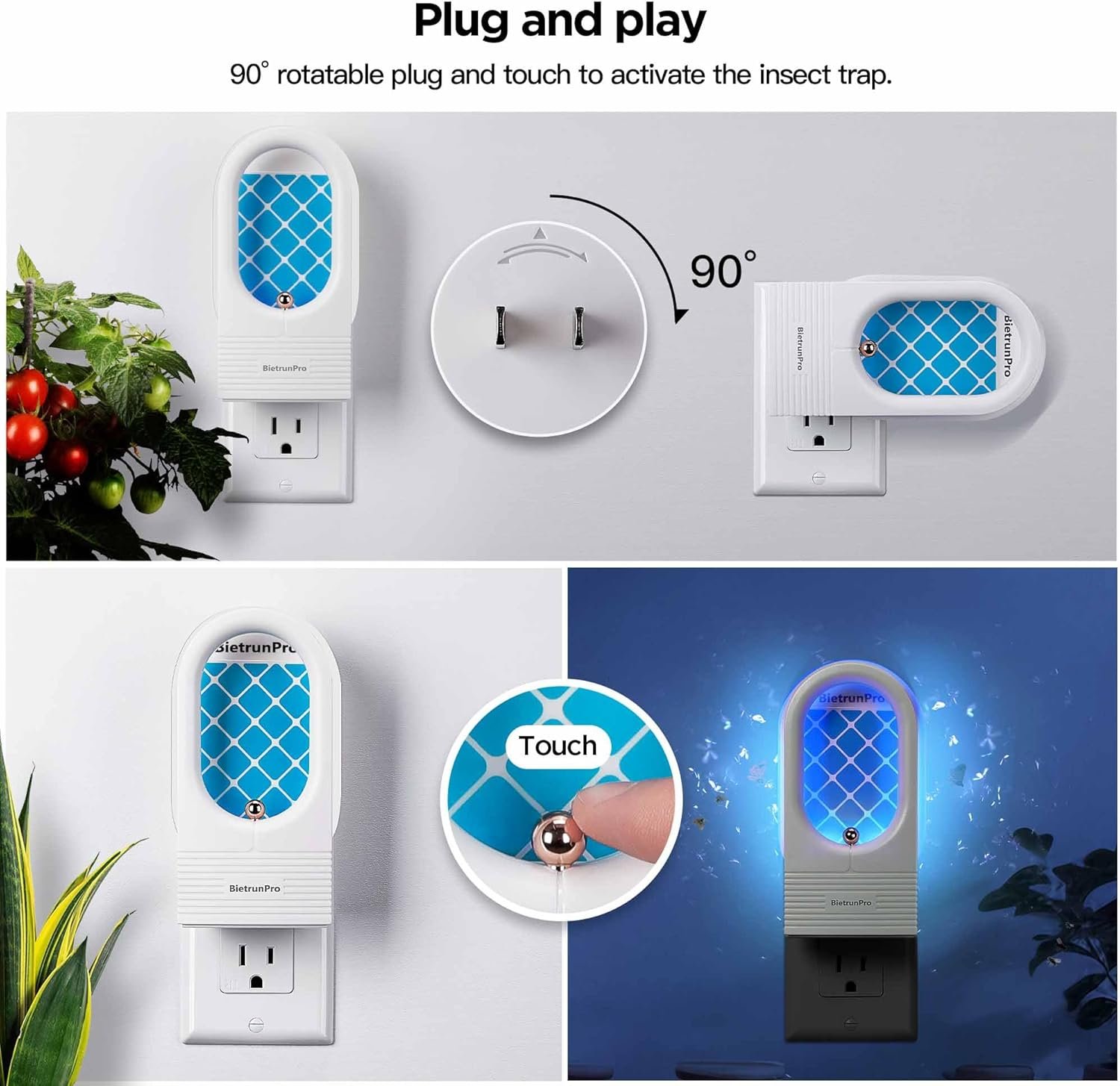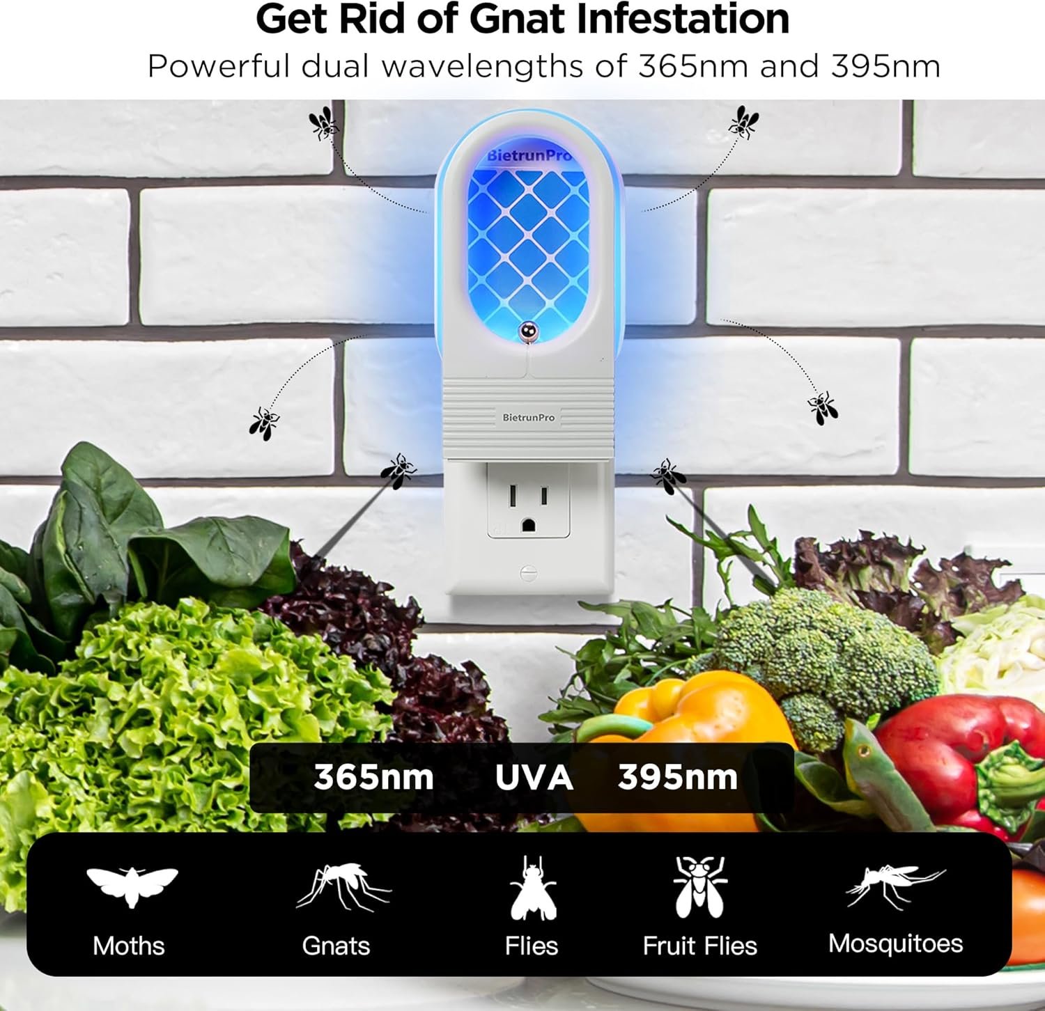 Fruit Fly Traps/Gnat Traps for Indoors, UV&Blue Light Plug-in Gnats Killer Bug Trap, NAT Killer, Flying Insect Catcher Trap for Fruit Flies, Moths, Mosquitoes, Fungus, Get Rid of Gnat Infestation
