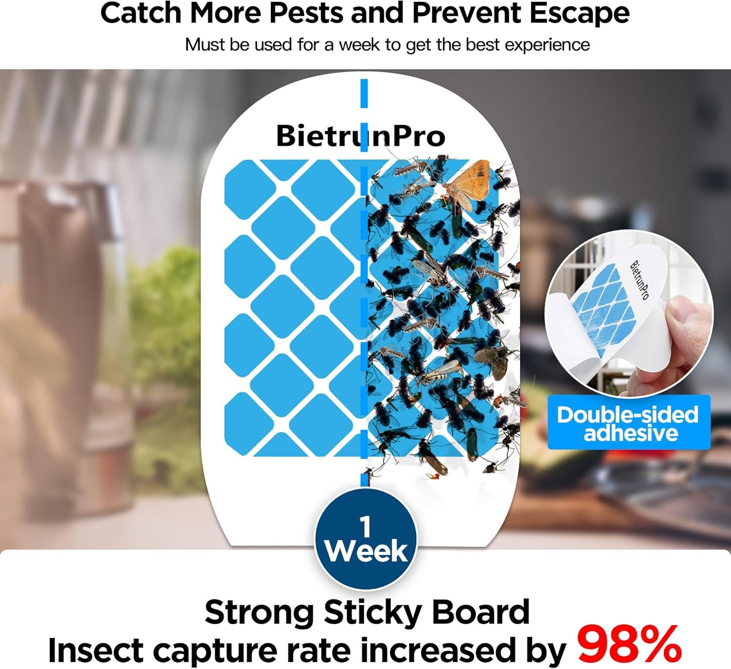 Enhanced double-sided adhesive boards: ●Our boards feature a dual-sided design and superior adhesive strength, capturing a variety of pests, including flies, fungus gnats, fruit flies, and clothes moths etc. and increasing the capture rate by 98 %.(●Tip: Optimal performance is achieved in dimly lit environments.).(●Note: Prior to use, remove the protective film from the adhesive board. ●We recommend replacing the board when the number of trapped insects exceeds 50%.)