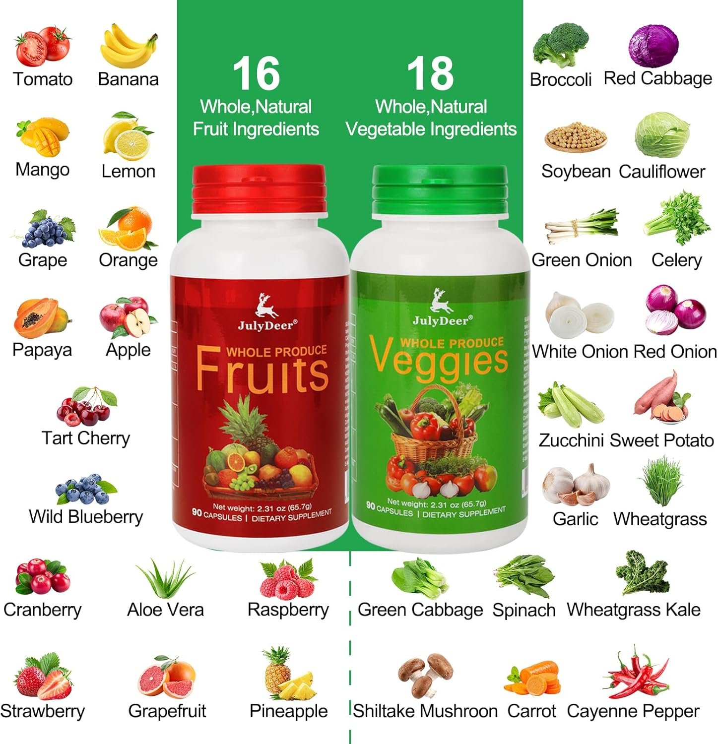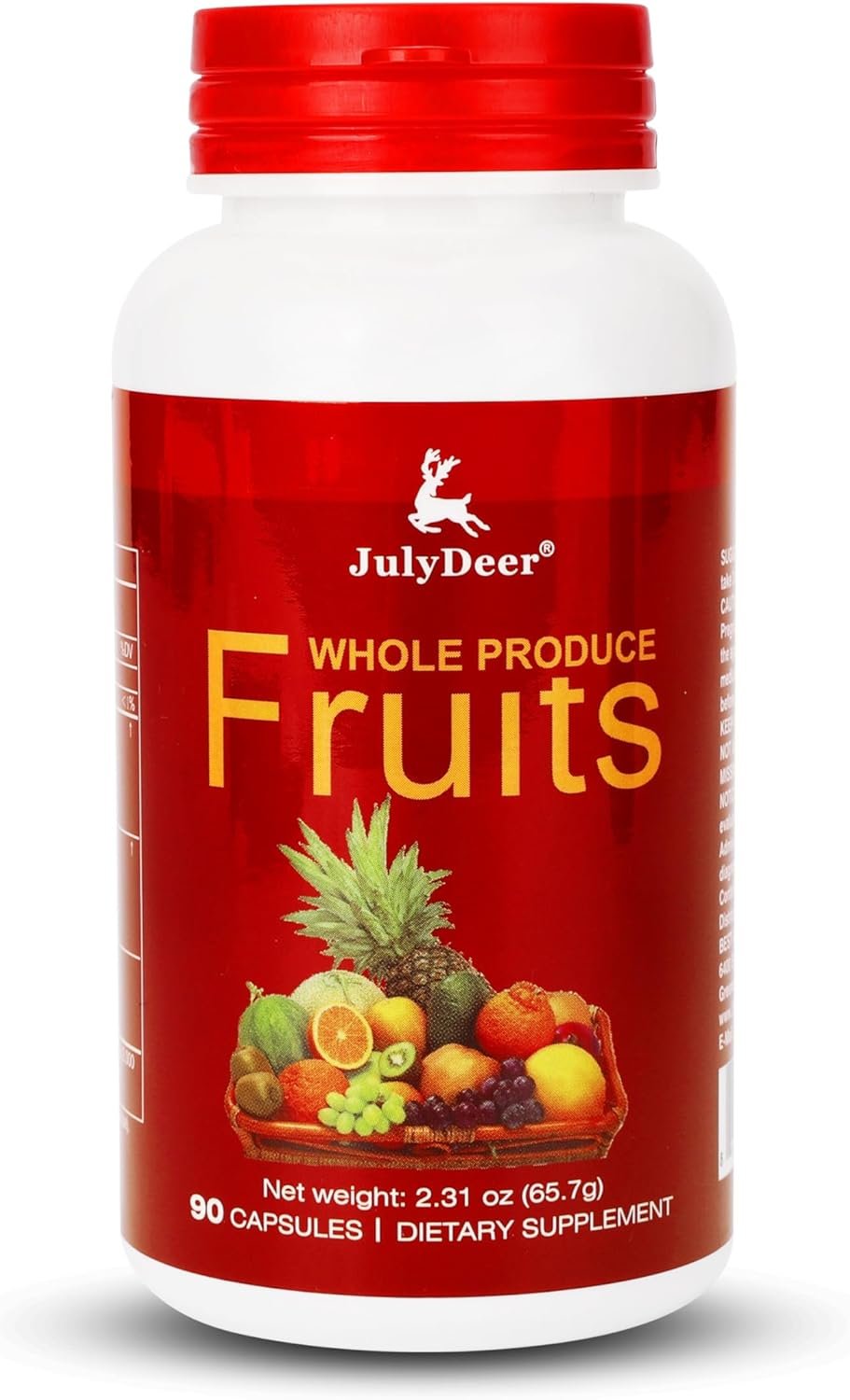 Whole Food Fruits Supplement – Blend of 16 Fruits Tomato, Banana, Mango, Lemon, Grape, Orange, Papaya, Apple, Tart Cherry, Wild Blueberry, Cranberry, Raspberry, Strawberry, Grapefruit, Pineapple, Raspberry, Aloe Vera – 2000 mg per 3-Capsules