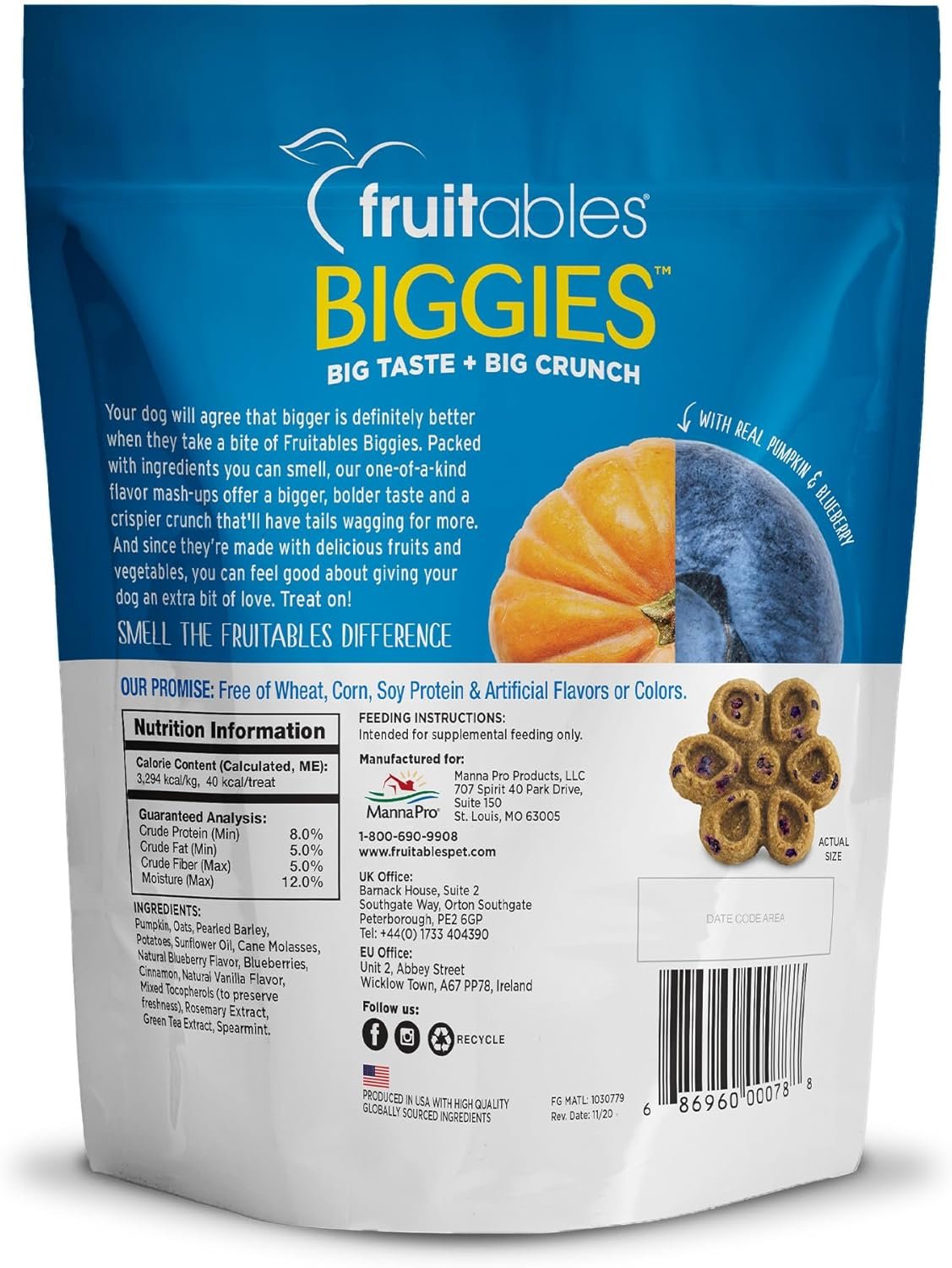 Fruitables Biggies Dog Biscuits – Crunchy Dog Biscuits Made with Pumpkin – Healthy Dog Treats Packed with Real Fruit Flavor – Free of Wheat, Corn and Soy – Pumpkin & Blueberry – 16 oz