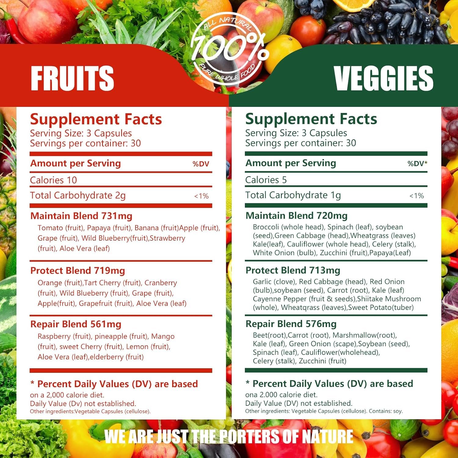 Fruits and Vegetables – Complete Nutrition Supplement with Powerhouse Fruits and Veggies for Adults and Children – 90 Fruit Capsules, 90 Vegetable Capsules