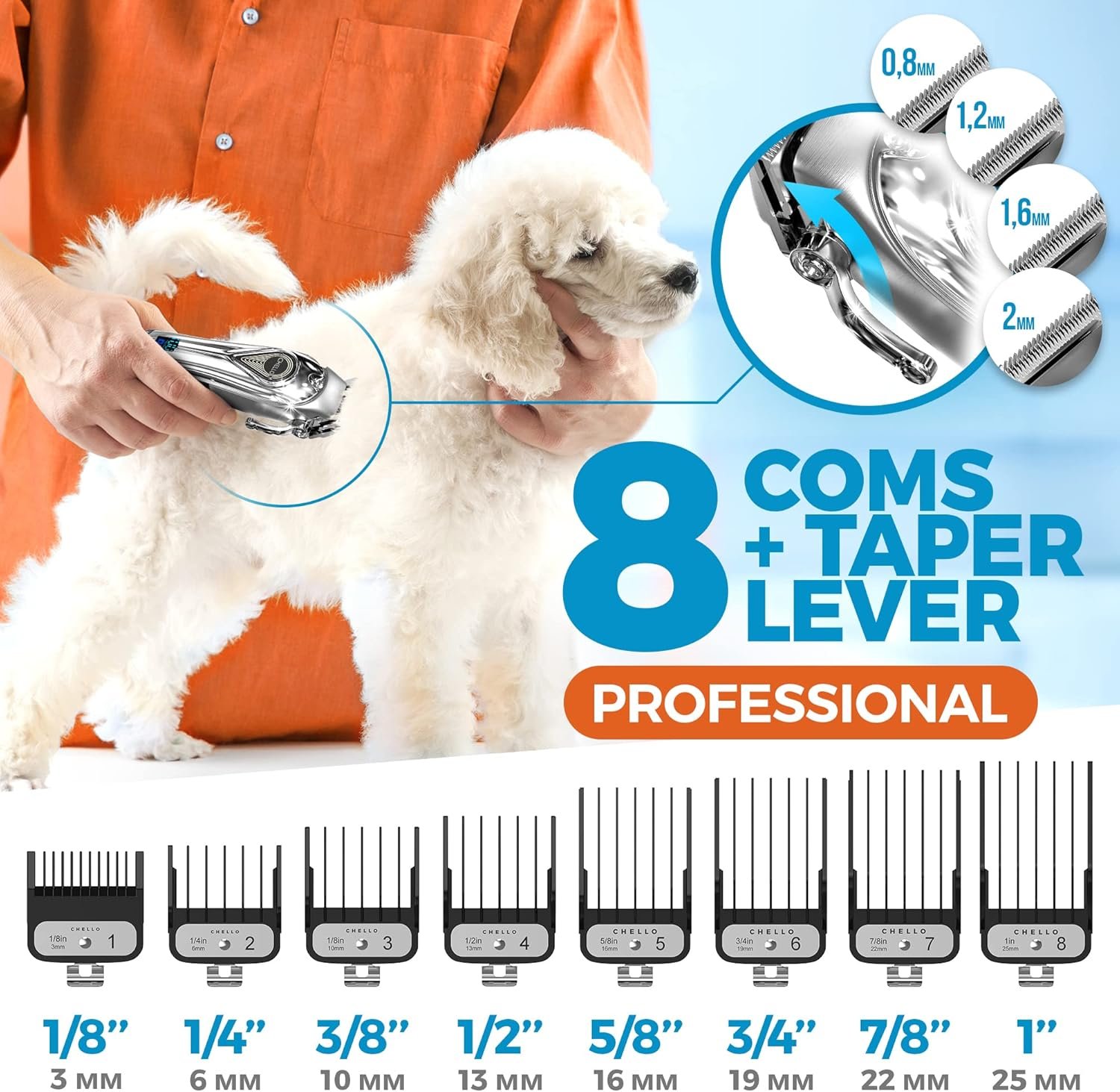🐶 S𝐚𝐟𝐞 𝐠𝐫𝐨𝐨𝐦𝐢𝐧𝐠 𝐟𝐨𝐫 𝐚𝐧𝐲𝐨𝐧𝐞 – CHELLO pet grooming clippers & electric shaver is flawless for a variety of animals, such as little or long-haired dogs, rabbits, cats, horses… this safe cordless hair trimmer design guarantees calm and no-hurt skin grooming for your pets. With this clipper set you won’t face hair stuck in the blades or other unpleasant situations.