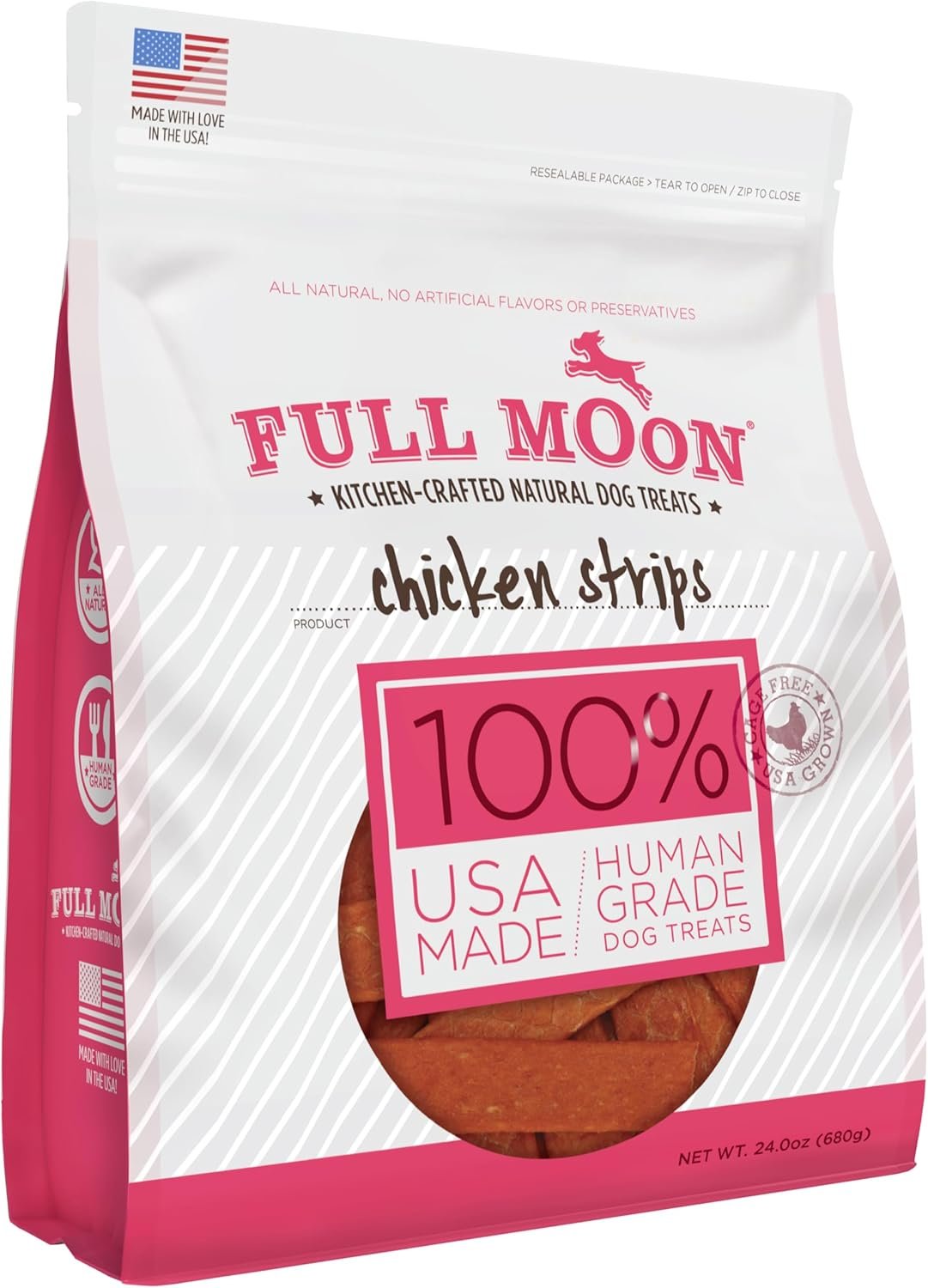 Full Moon Chicken Strips Healthy All Natural Dog Treats Human Grade Made in USA Grain Free, 1.5 Pound (Pack of 1)